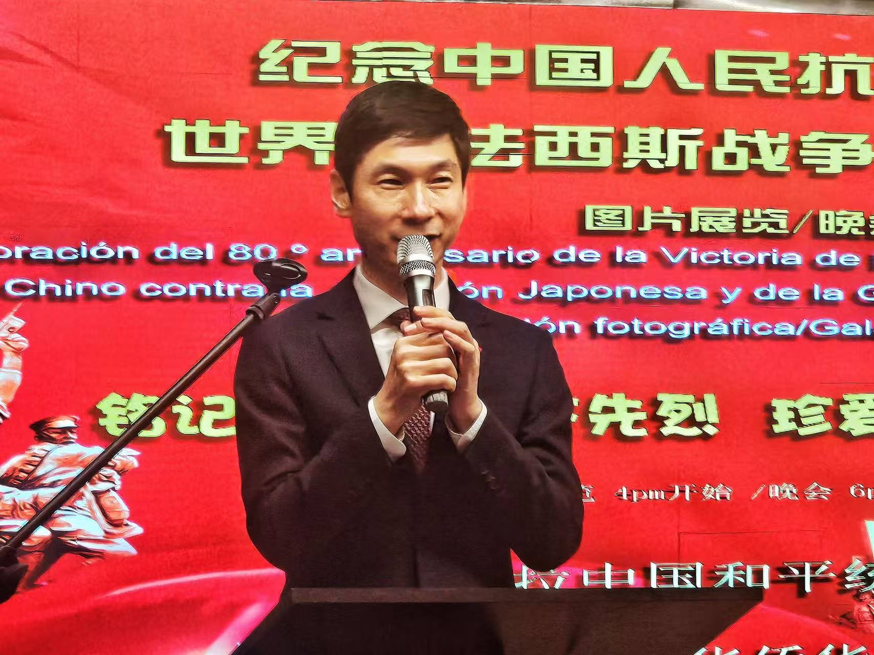短短,几个小时,我们仿佛穿越了八十年烽火岁月:36幅珍贵图片,让我们看见山河破碎中挺立的中国脊梁;一段段影像,让我们听见松花江上、微山湖畔的呐喊与枪声;一首首歌曲,让我们重温“英雄赞歌”的壮怀激烈;一支支舞蹈,让我们感受“我的祖国”的澎湃血脉。北京大学郭教授的铁证演讲,更让我们坚定了一个永不动摇的信念——台湾是中国不可分割的一部分!这一切,都在这里聚成一句话:正义必胜!和平必胜!人民必胜!今天,我们不仅是在缅怀,更是在传承。当旅委青年华裔代表用西班牙语发出和平誓言,当委内瑞拉国会议员与我们同声相应,我们读懂了:抗战精神没有国界,和平愿景属于全人类。让我们把今晚点燃的火炬带回去,把历史的记忆带回去,把对祖国的深情带回去,化作明天工作和生活的力量——让战争永不再来,让和平薪火相传!