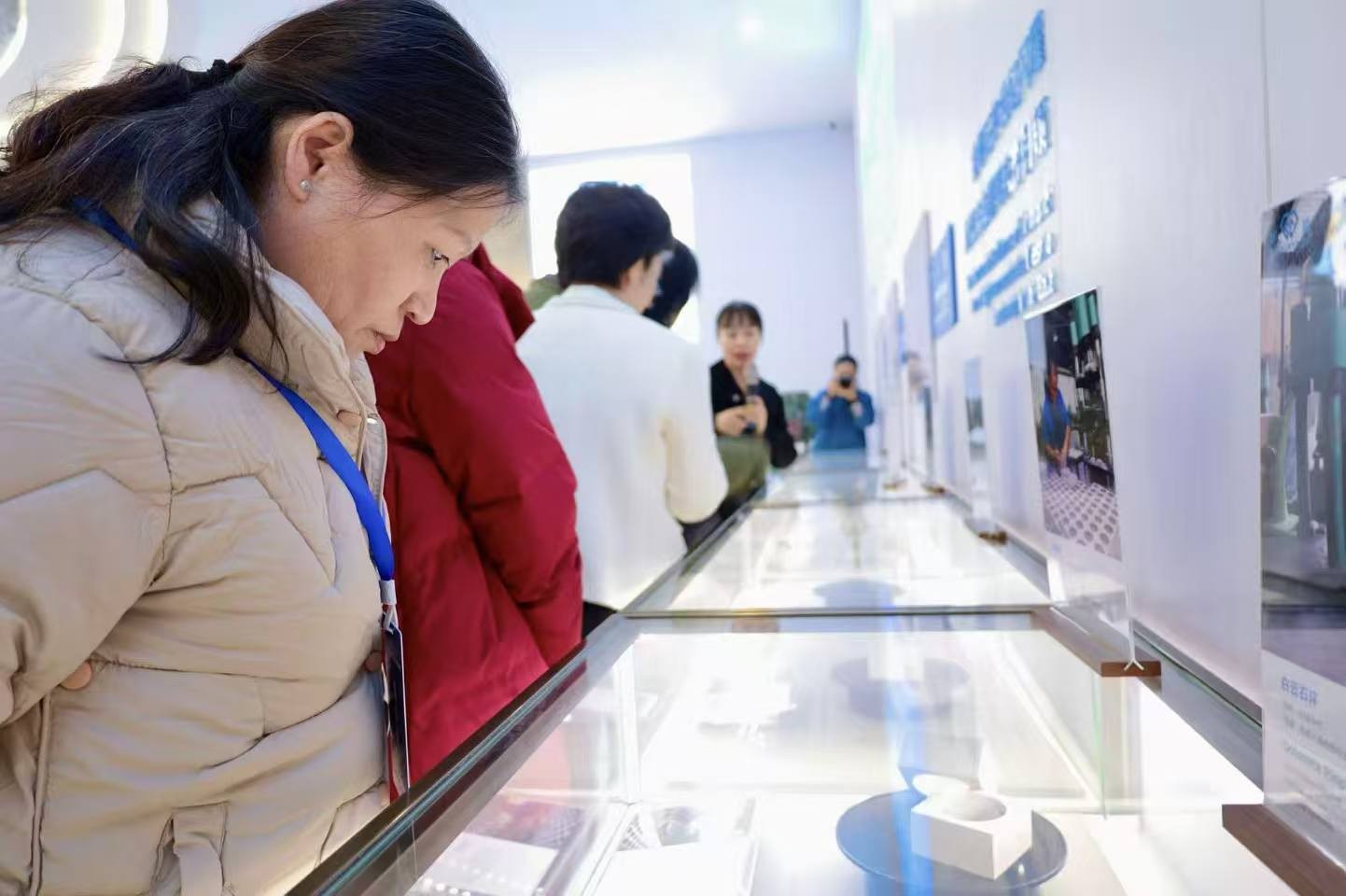 活动现场,培育钻石展台是核心参访区域。展台内,“HUAJEW华晶”品牌的培育钻石饰品整齐陈列,灯光下,钻戒、吊坠等成品折射出璀璨光泽,引得女性媒体代表纷纷驻足。有人凑近展台细察钻石的切工与光泽,有人拿起展台上的图文资料翻阅,更多人围在工作人员身旁提问。“我们拥有多项自主知识产权,工业金刚石和培育钻石产能均位居行业第一梯队,从毛坯生产到成品切磨,裸石培育到个性定制,再到后期品牌打造,全流程实现自主把控,产品质量有坚实保障。”工作人员耐心回应着媒体代表的疑问。
