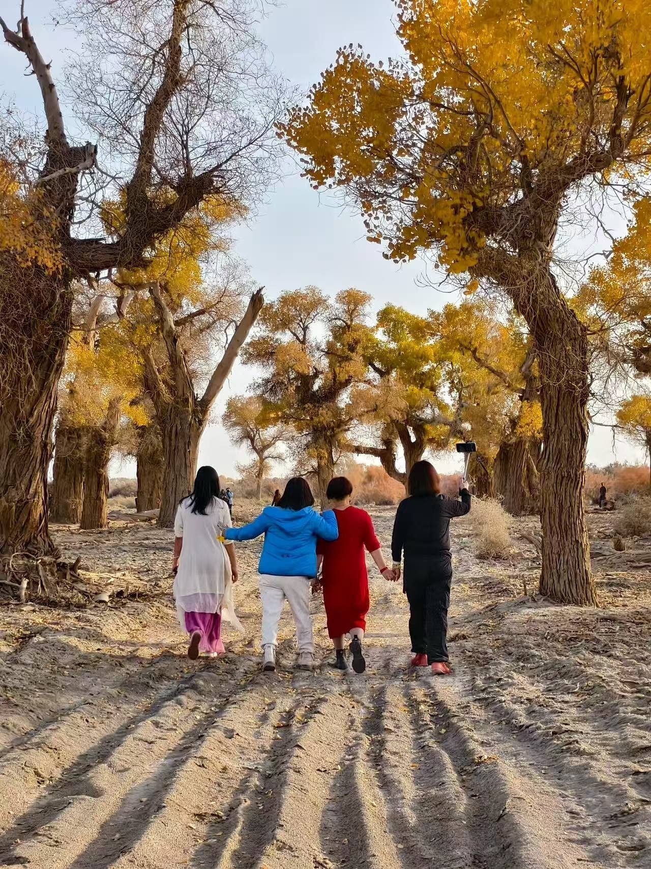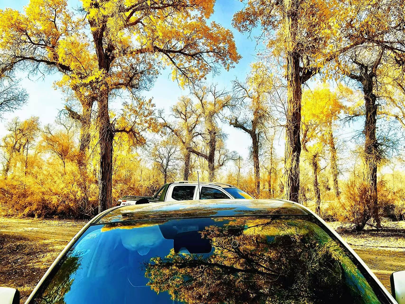 时光流转,今年十月下旬,我收到一份来自阿克苏地委宣传部的邀请,难掩心中欣喜,再度踏上这片魂牵梦萦的土地。当车轮驶入那条熟悉的道路,心跳竟有些按捺不住。直到视线尽头浮现出连绵夺目的金黄,我才终于长舒一口气——这一次,胡杨没有辜负等待。