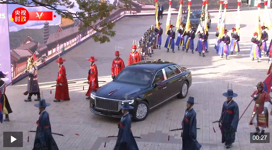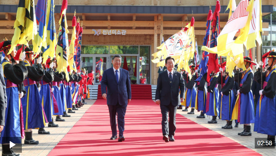 当地时间11月1日下午,韩国总统李在明在庆州博物馆为中国国家主席习近平举行欢迎仪式。