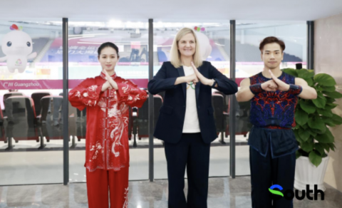 在十五运会开幕式的舞台上,粤港澳三地一脉相承的岭南千年非遗精髓被生动激活。除了长达近30米的“鳌鱼”巡游全场外,咏春、南拳刚柔并济,粤剧名家联袂登台,醒狮、英歌、龙舟等岭南非遗“顶流”与AIGC、VR、AR等技术相互交融。此外,广绣、广珐琅、嵌瓷等经典岭南工艺,经过创新设计后也转换为巨型灯笼戏台装置上的花卉纹样,别致新潮。
