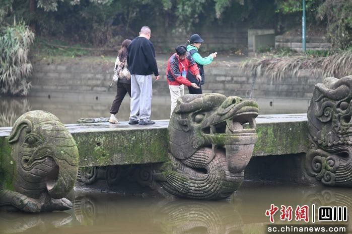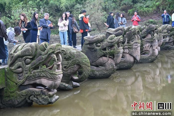 11月15日,20余家海外华文媒体代表走进四川省泸州市泸县,探访拥有600多年历史的龙脑桥。该古桥长54米,有桥墩14座,中部8座桥墩,继承和发展了秦、汉和唐、宋石刻传统,是当地珍贵的地面文物,也是中国古代桥梁建筑中罕见之作。