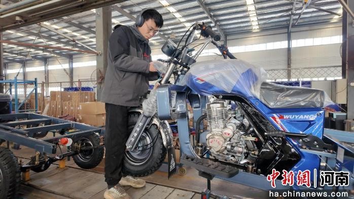 安装、接线、装灯……在洛阳五羊三轮摩托车有限公司(以下简称五羊摩托)厂区内,工人们全力赶制年底发往海外的订单,一辆辆崭新的三轮摩托车正从生产线上依次下线。