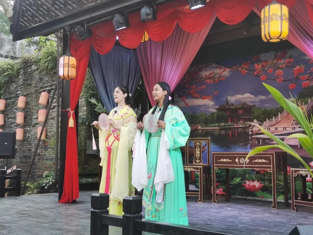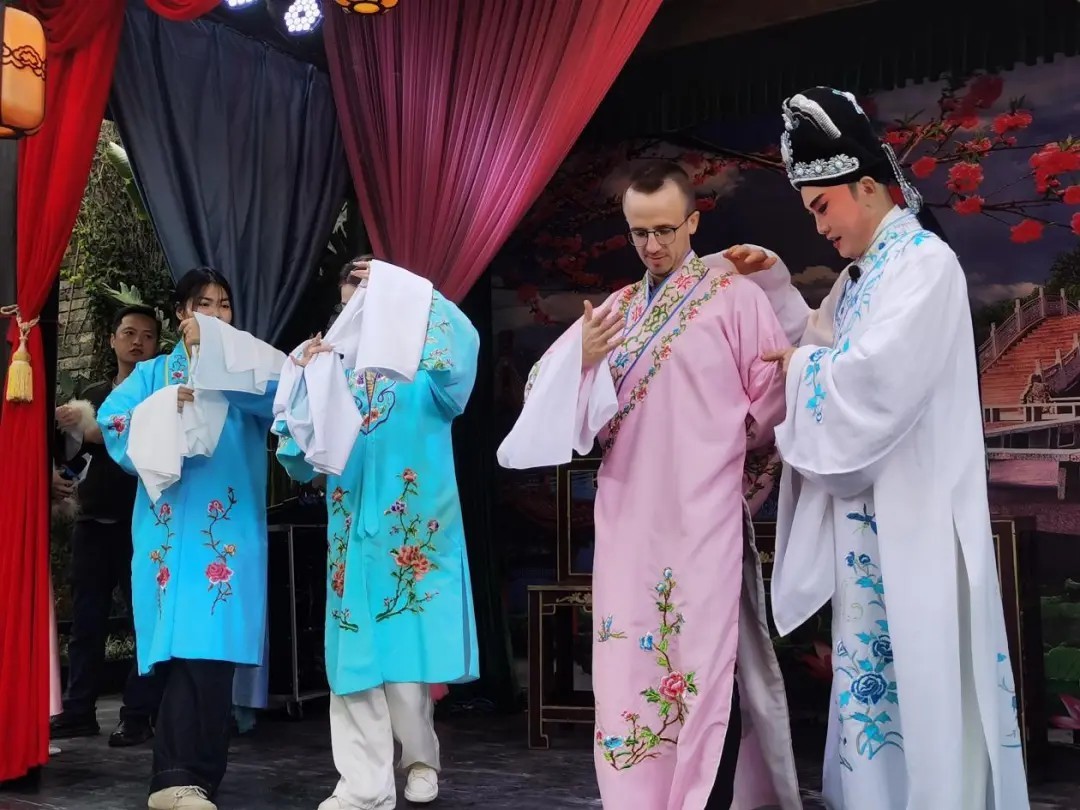 国际友人学唱琼剧
