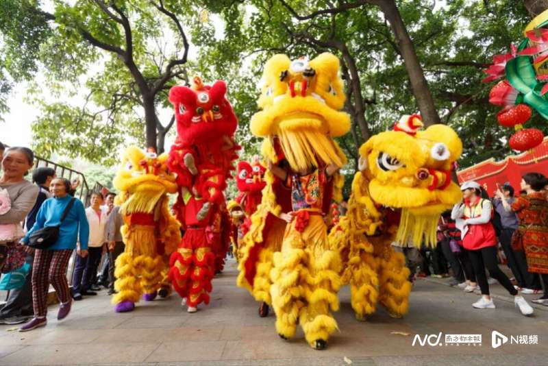 今年春节,岭南印象园将举办“昼非遗·夜千灯”春节双重盛宴活动。关羽狮即将在岭南印象园带队出巡,狮头高达3米,狮尾延展威武庄重,金龙、凤凰、醒狮与大头佛同游;四头南派醒狮高低腾跃,展现广府醒狮“采青”“攀高”等经典招式,在地道锣鼓点中,舞出纯正的广东年味。夜幕降临,客家鱼灯与游龙穿行巷弄巡游,打铁花表演也将为游客带来“非遗+视觉”的双重盛宴。