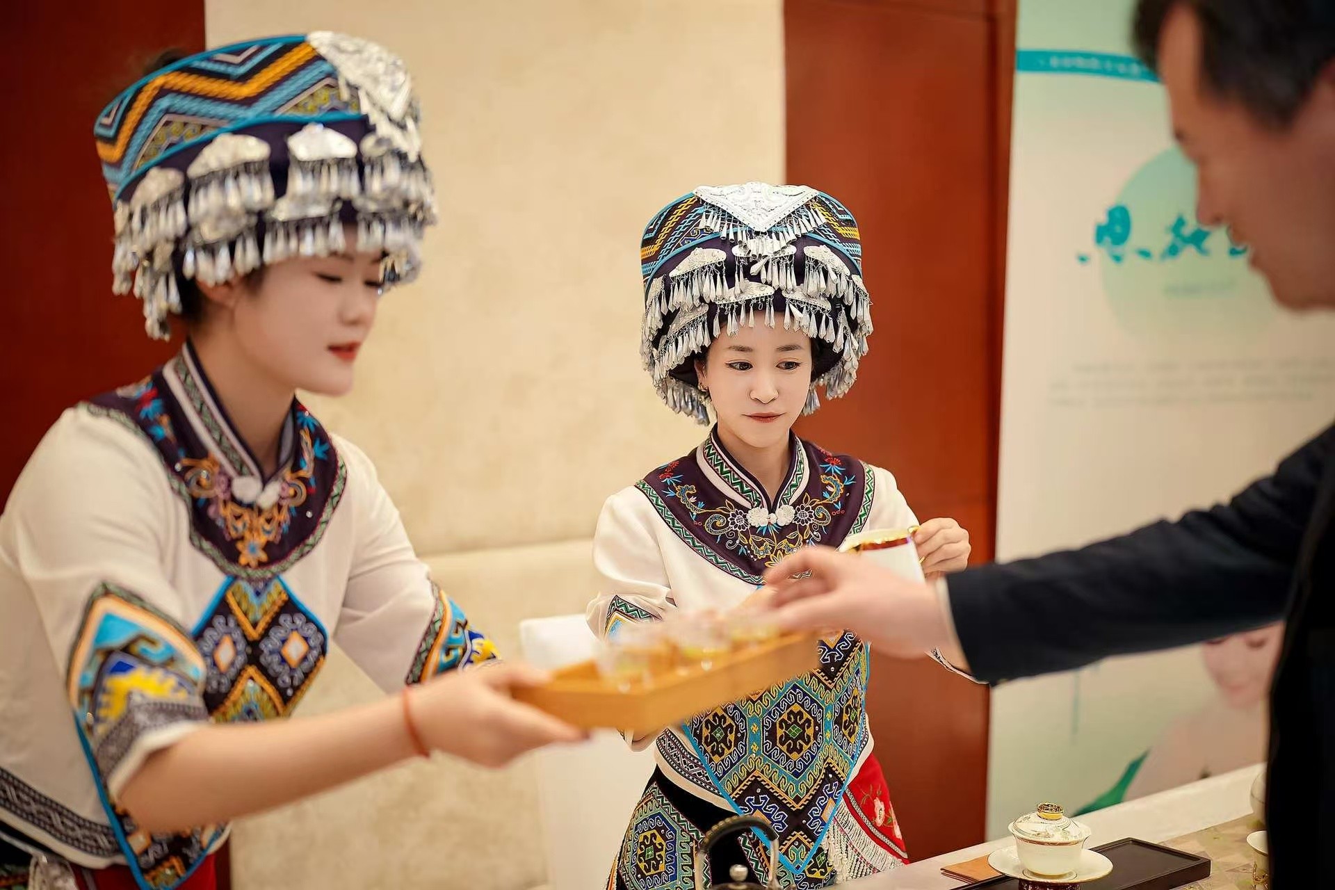 活动伊始,会场一侧的恩施玉露茶文化展示区便吸引了众多嘉宾驻足。恩施茶艺师身着民族传统服饰,手法娴熟地冲泡着今年的新茶恩施玉露。沸水注入,茶叶在水中缓缓舒展,汤色嫩绿明亮,清香与花香交织升腾,沁人心脾。