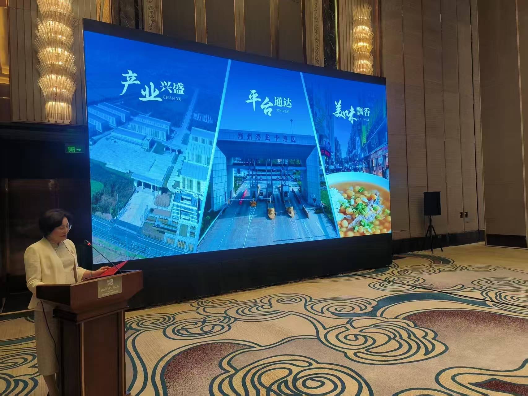 在开放平台建设方面,申焰重点介绍了荆州“黄金水道”通江达海、国字号平台强势赋能的立体化开放格局。荆州港拥有483公里长江深水航道,盐卡港区获批临时开放,国际货物从荆州“家门口”出海;国家级加工贸易产业园顺利通过商务部考核评估,汇聚三大国家级外贸转型升级基地;全力申建荆州保税物流中心(B型)和跨境电商综试区,荆州国际会展中心(江汉平原产业交流中心)将于今年10月建成运营,成为“荆企出海、荆品出境”展示的新窗口。17家国际海外分会遍布全球。