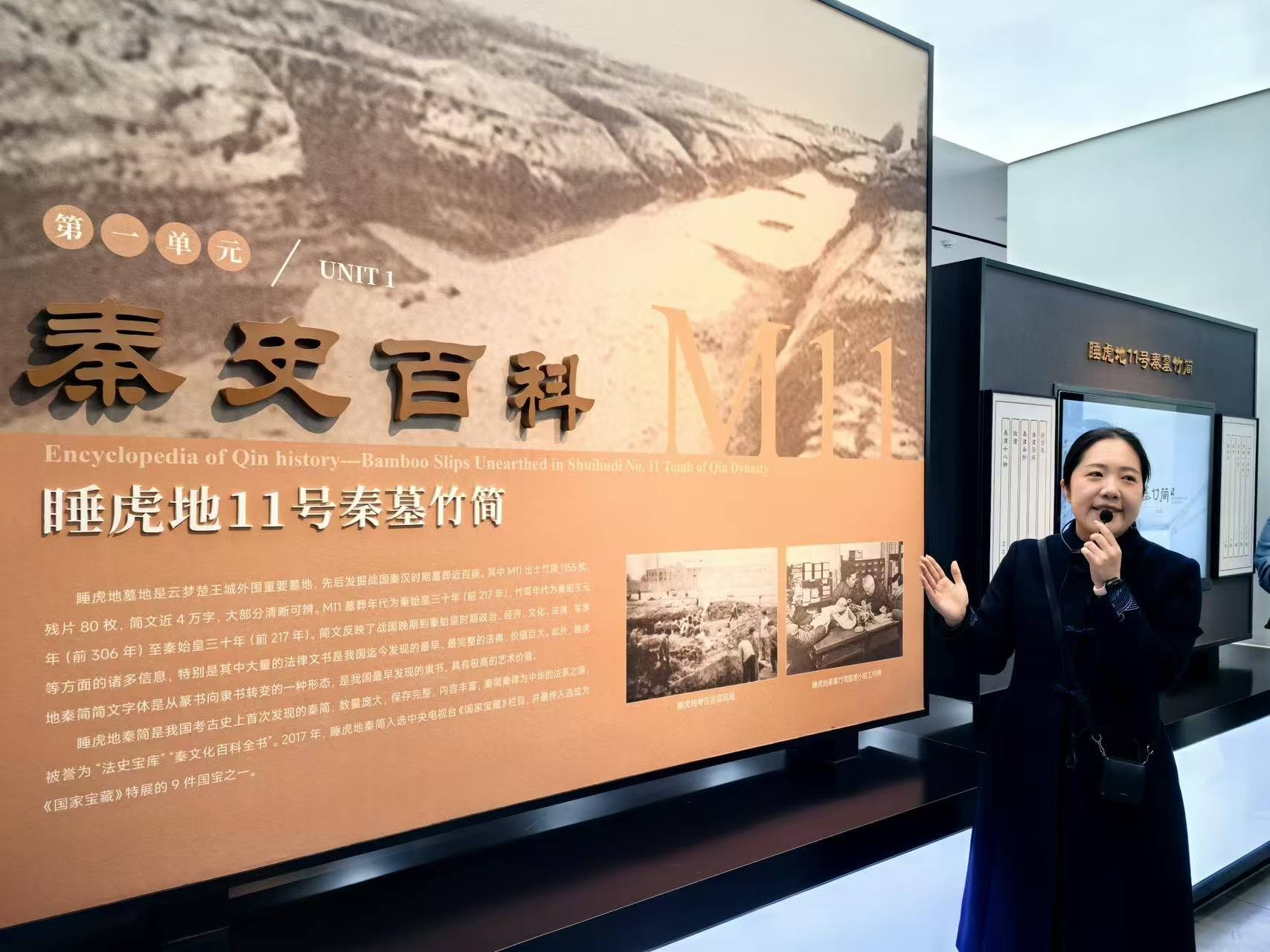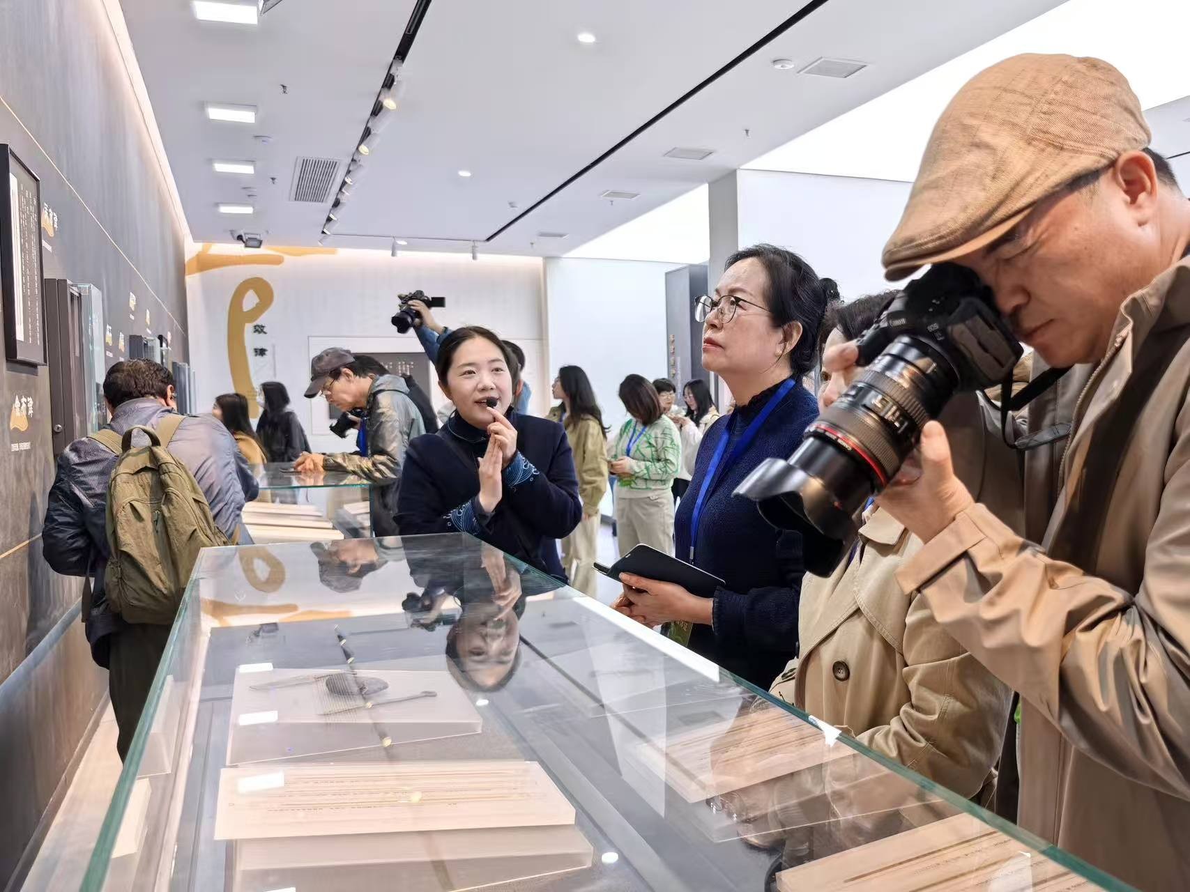 媒体团驻足展柜前,凝视一枚枚泛黄简牍,聆听讲解员讲述“喜”的生平——这位秦代基层官吏,以一生记录见证秦代制度与社会百态。大家用镜头定格文物细节,用笔触记录历史回响,惊叹于简牍承载的法治文明、文字演变与生活图景。