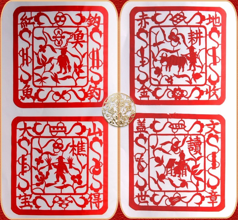 纸张,较早的孝感雕花剪纸的用纸是白贡川纸为最好,次为重红纸,小贡纸等土纸,选择纸张时,纸的纹路要细致平和,纸质要柔软细密,厚度要适中偏薄,绝不能含细砂粒,否则,不好吃刀,又伤刀锋,根据不同的用途,选择不同材质和颜色的纸张。