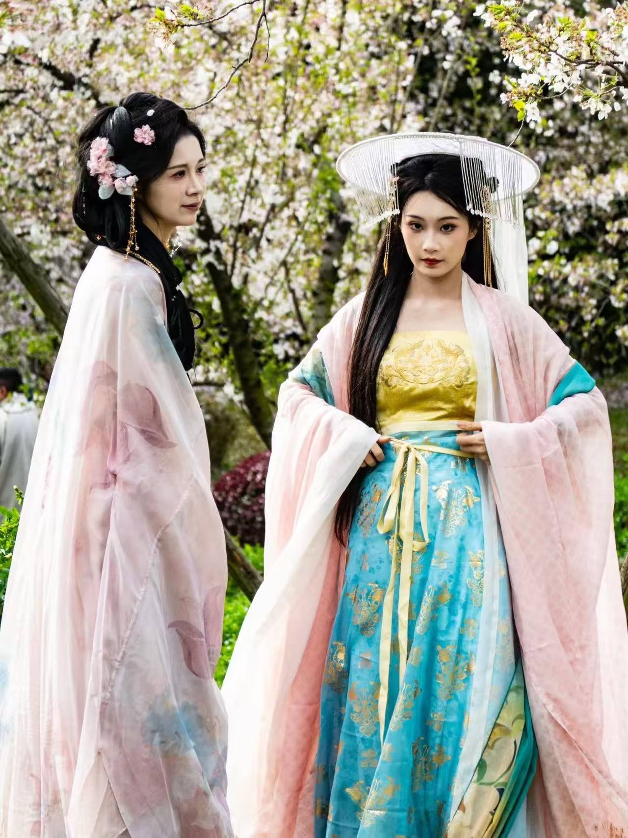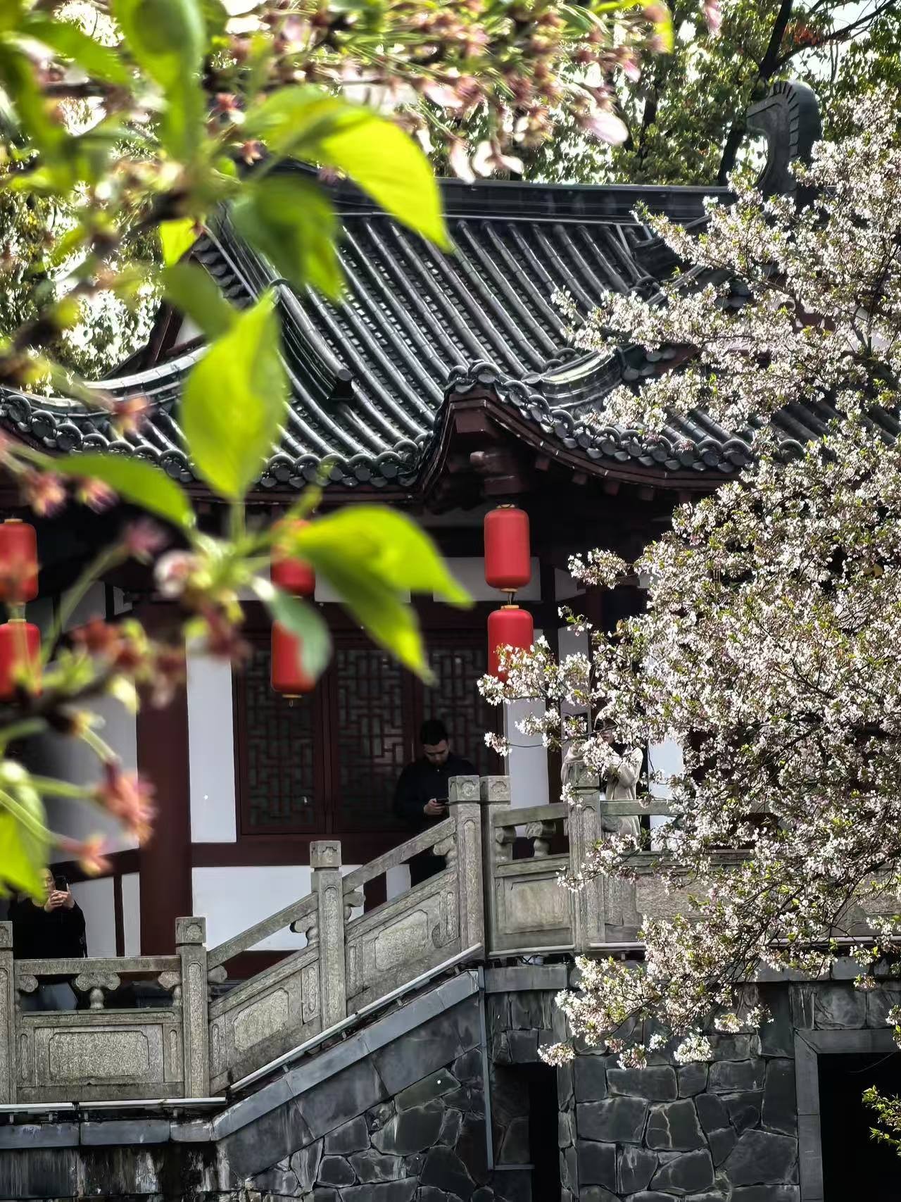 最亮眼的当属不少身着汉服的小姐姐,成为樱园里一道独特的风景线。她们梳着精致发髻,身着襦裙、马面裙等各式汉服,衣袂飘飘,步履轻盈。漫步在花树之下,裙摆与飘落的樱花瓣交相辉映,一颦一笑都透着古典温婉:有人立于樱花树下轻提裙摆,任花瓣落满肩头;有人执伞回眸,眉眼间尽是古韵风雅;还有的穿梭在樱林花海中,勾勒出一幅幅穿越千年的古风画卷,让这片樱花海多了几分雅致与韵味。