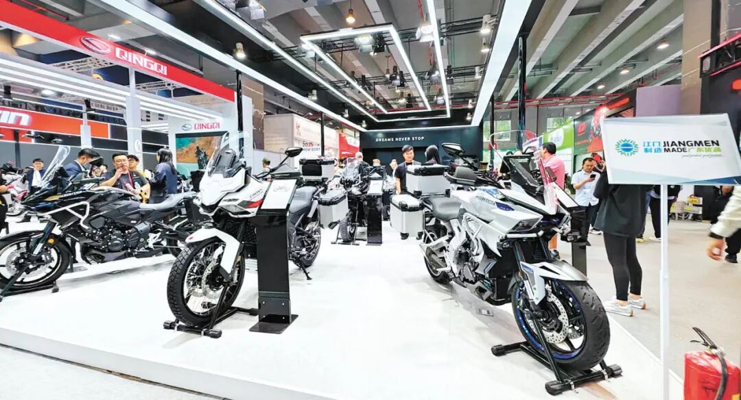 数据显示,2025年全国每出口9辆内燃机摩托车,就有1辆来自广州;每出口5辆摩托车,就有1辆来自江门,江门整车及零配件出口份额接近全国1/4。最近三年,江门摩托车出口额年均增长30.7%。