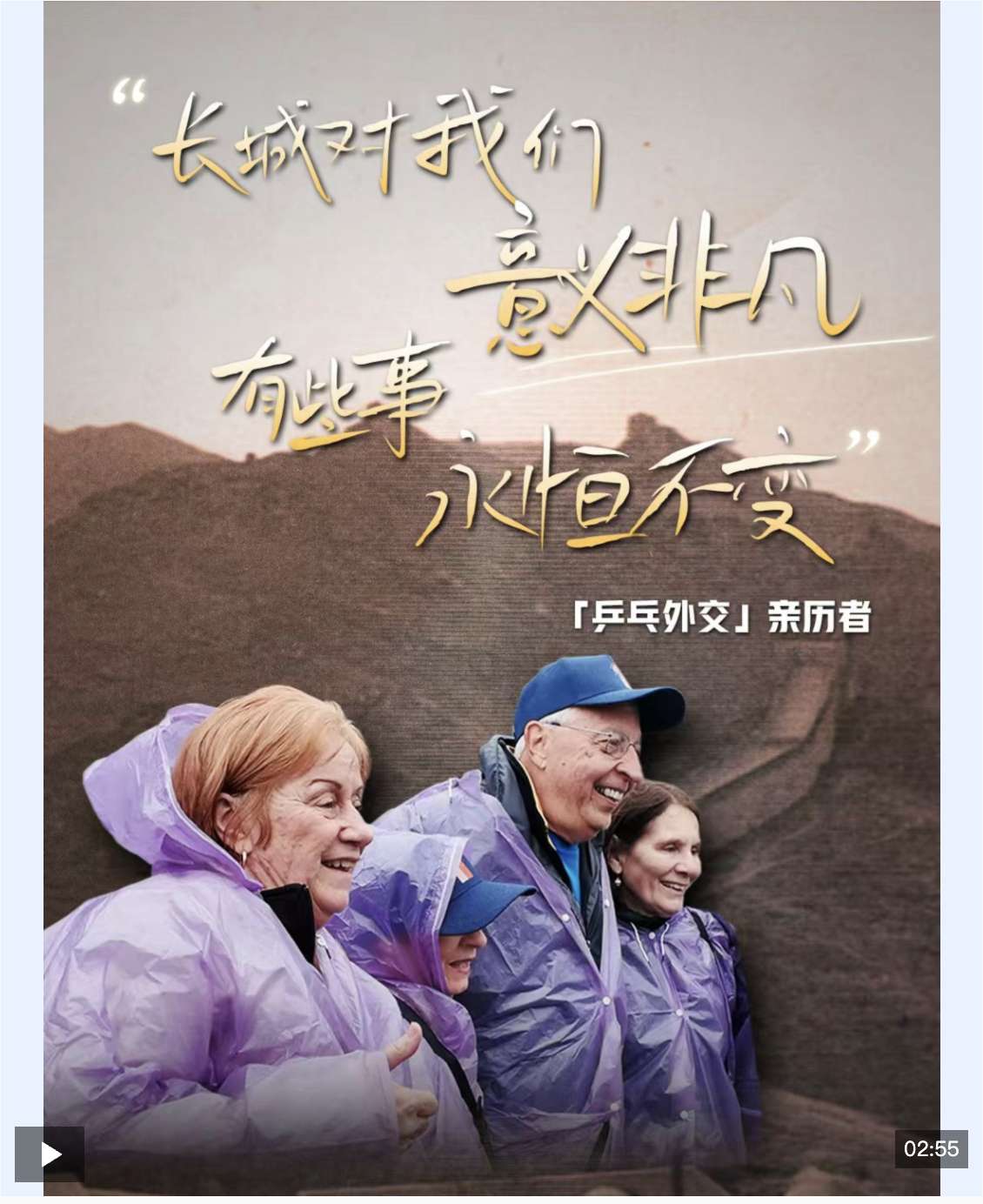 “乒乓外交”亲历者朱迪·霍夫罗斯特:我们是1971年“乒乓外交”的亲历者,如今依然在这里风雨无阻地前行,我们感到很有活力,非常高兴来到这里。怎么说呢,就是特别温暖。