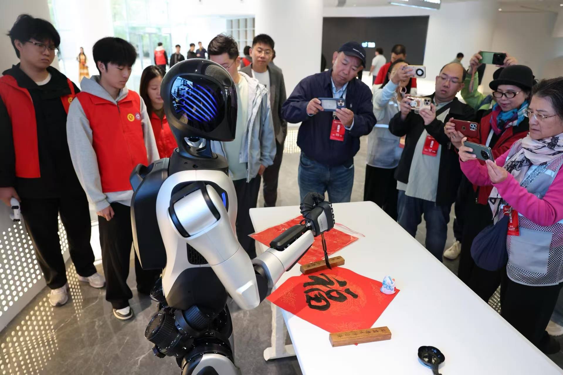 Overseas Chinese media representatives tour the Zhiyuan Embodied Intelligence Robot Park. Photo by Zhang Lang