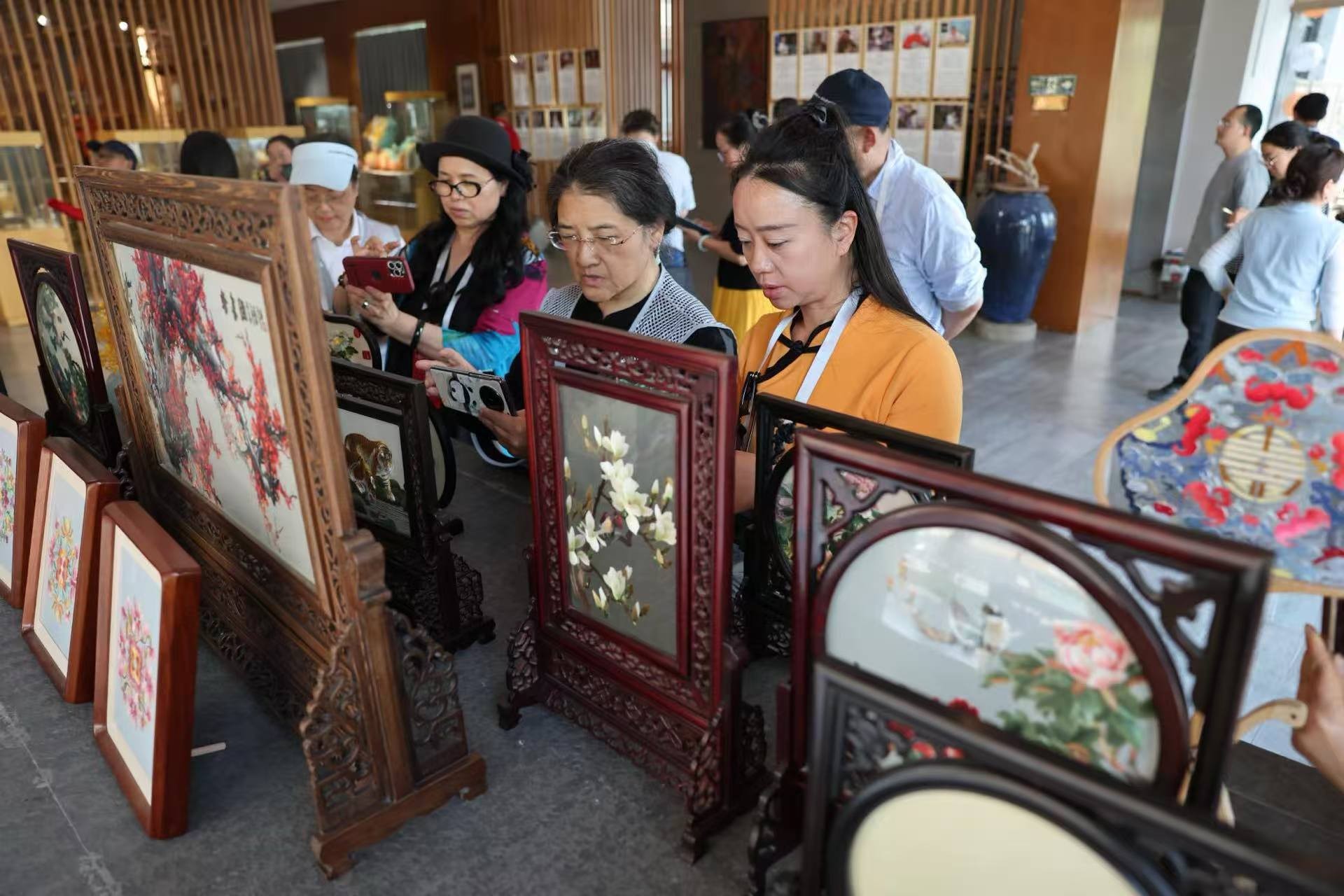 Overseas Chinese media representatives visit the Ancient Town Intangible Cultural Heritage Museum. Photo by Zhang Lang