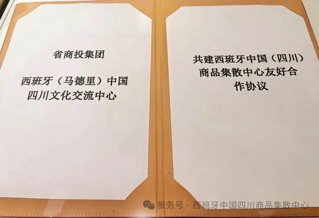 活动现场,西班牙(马德里)中国四川文化交流中心主席陈磊,与四川省商业投资集团副总经理王万军代表双方正式签署合作协议,省属国企硬核力量与海外本土平台强强联合、优势互补,合力落地建设西班牙中国(四川)商品集散中心,共同打造辐射欧洲的川品集散枢纽与对外开放新门户。