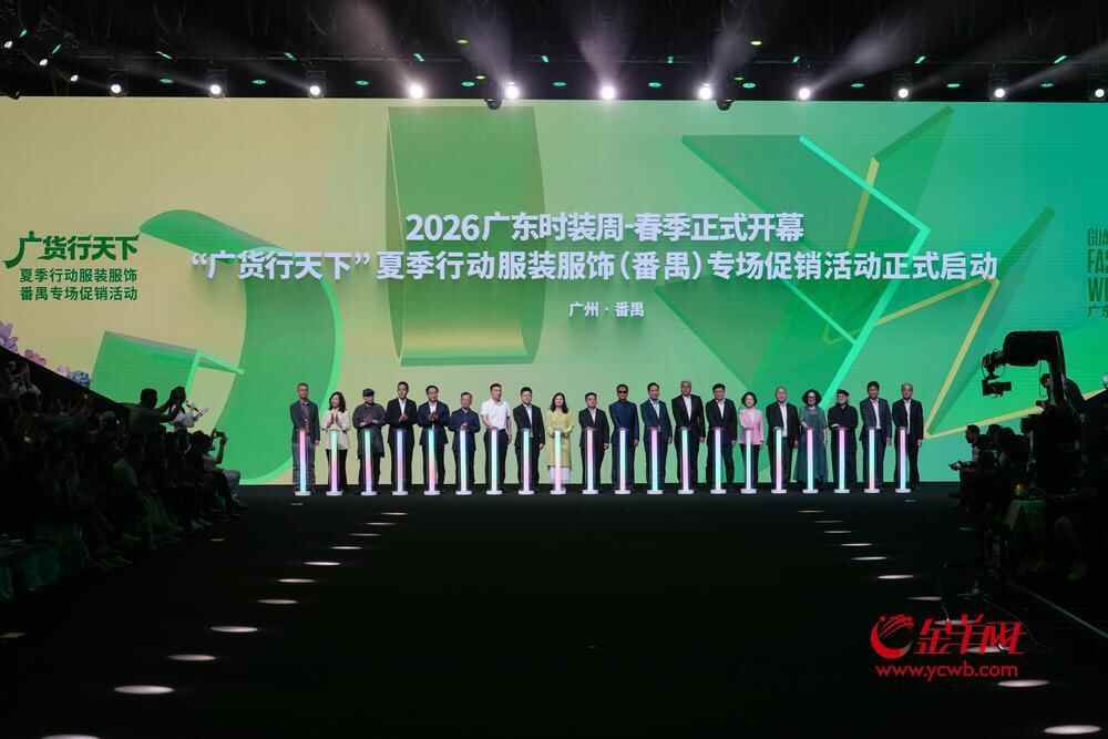 4月17日下午,2026广东时装周春季开幕式暨“广货行天下”夏季行动服装服饰(番禺)专场促销活动正式启动。本次活动由广东省工业和信息化厅主办,广州市番禺区人民政府、广东省服装服饰行业协会及广东省服装设计师协会联合承办,广州纺织工贸企业集团有限公司与广州国际轻纺城联合主办,并得到广州市番禺信息技术投资发展有限公司、广州市番禺产投投资有限公司两大战略伙伴的鼎力支持。
