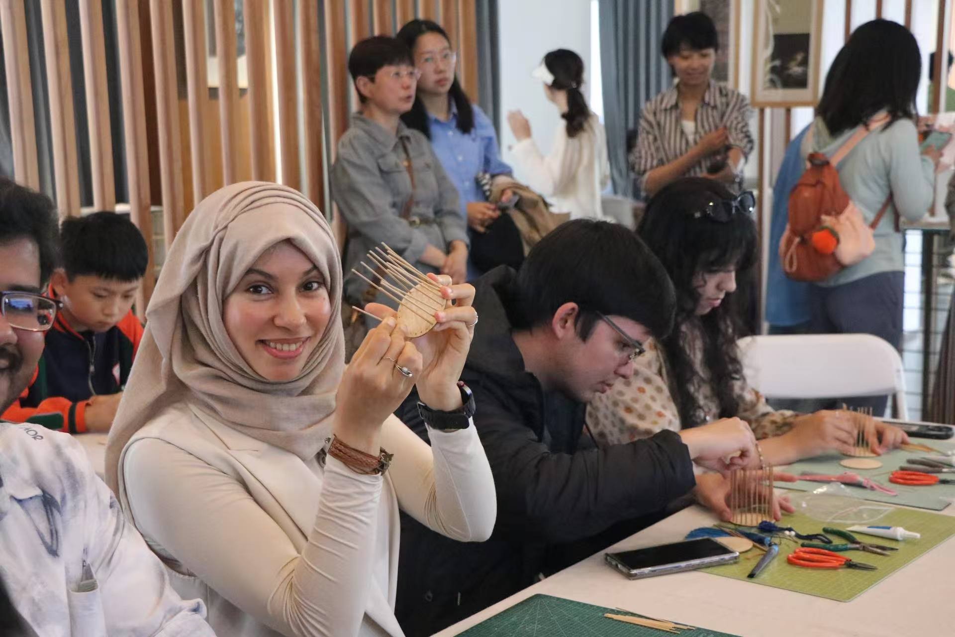 来自巴基斯坦的阿里同样难掩兴奋,他仔细端详着银花丝饰品,反复感受螺钿工艺在光影下变幻的五彩光泽。“巴基斯坦也有传统手工艺,但中国的细腻、精致和创意,让我大开眼界。这不仅仅是工艺品,更是有温度、有故事的文化瑰宝。”