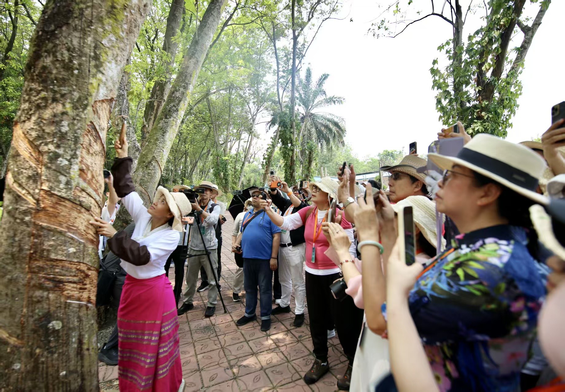 参访伊始,媒体代表率先走进橡胶种植示范区。直观了解热带橡胶作物的培育、种植与割胶工艺,近距离认识西双版纳热带作物科研发展成果。