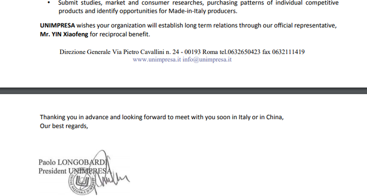 随着中国经济的高速发展及中国拥有强大的消费市场,意大利政府及意大利中小企协会联盟近年来一直积极推进意大利中小企业和中国企业的合作和交流,作为长期在欧洲经商和近年回国内发展的成功企业家尹啸峰先生,因多年致力于中意经济交流获得了意大利政府及意大利中小企协会联盟高度认可,于2013年起就获得了意大利中小企协会联盟主席保罗•隆戈巴蒂官方正式授权,经多年筹备及多方努力,意大利中小企协会联盟驻海南办事处得以正式揭牌。
