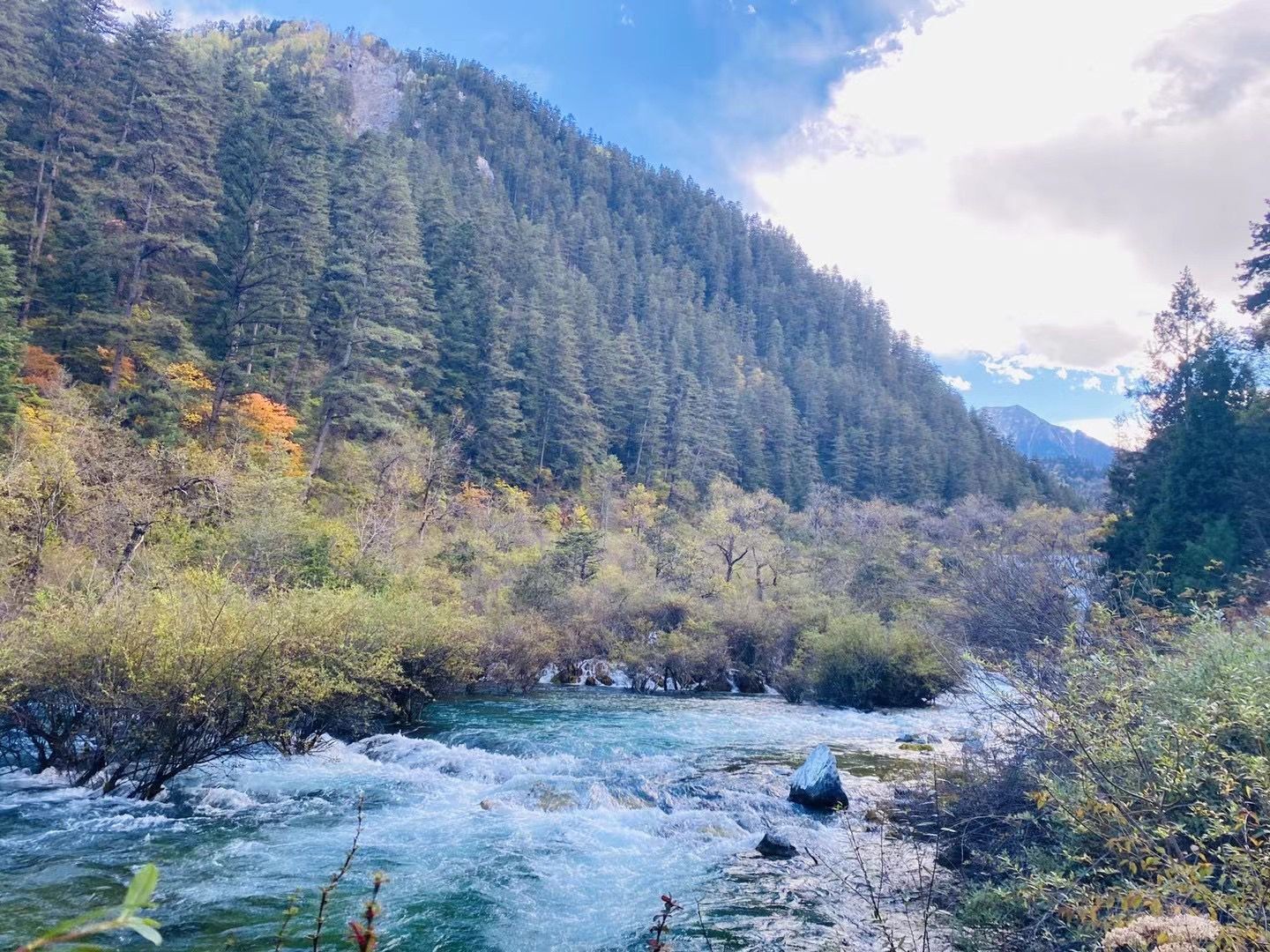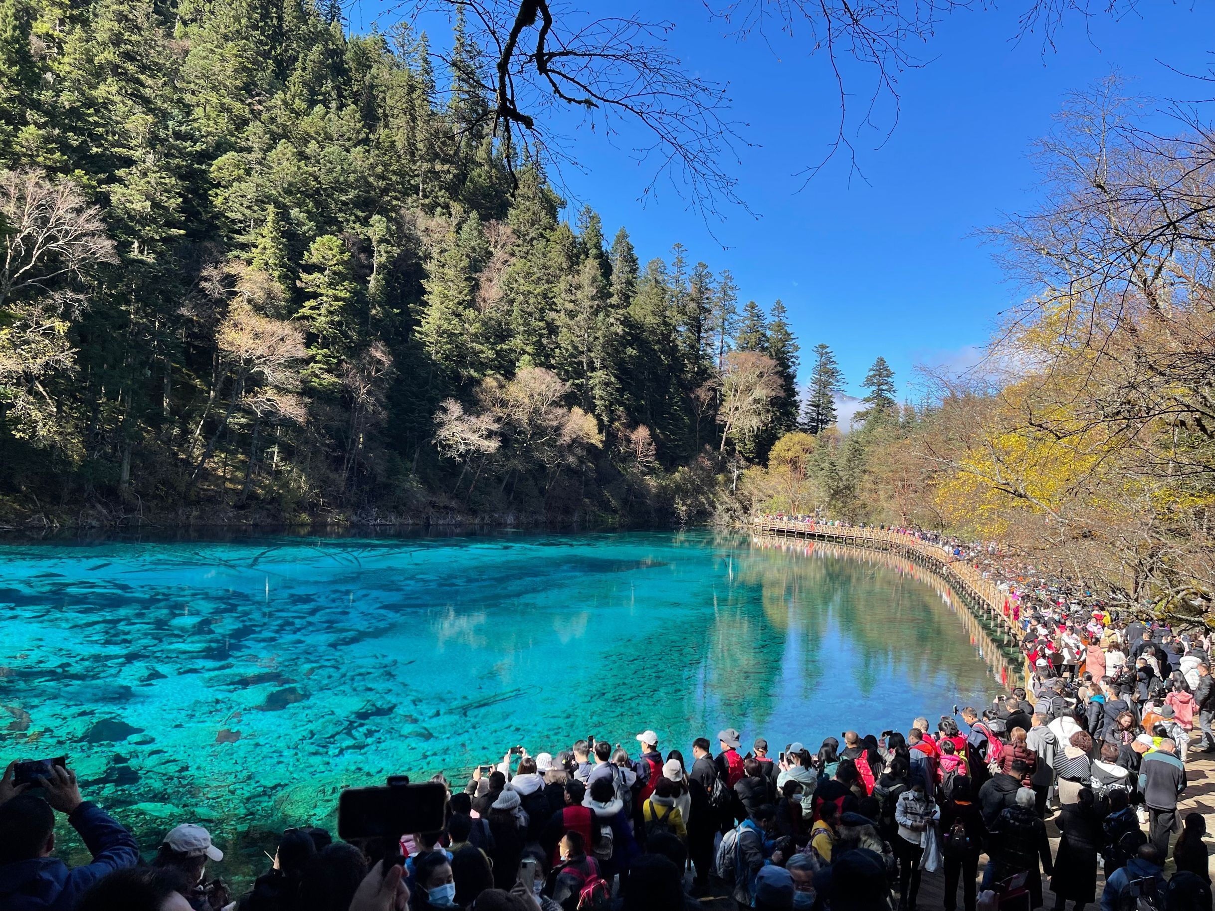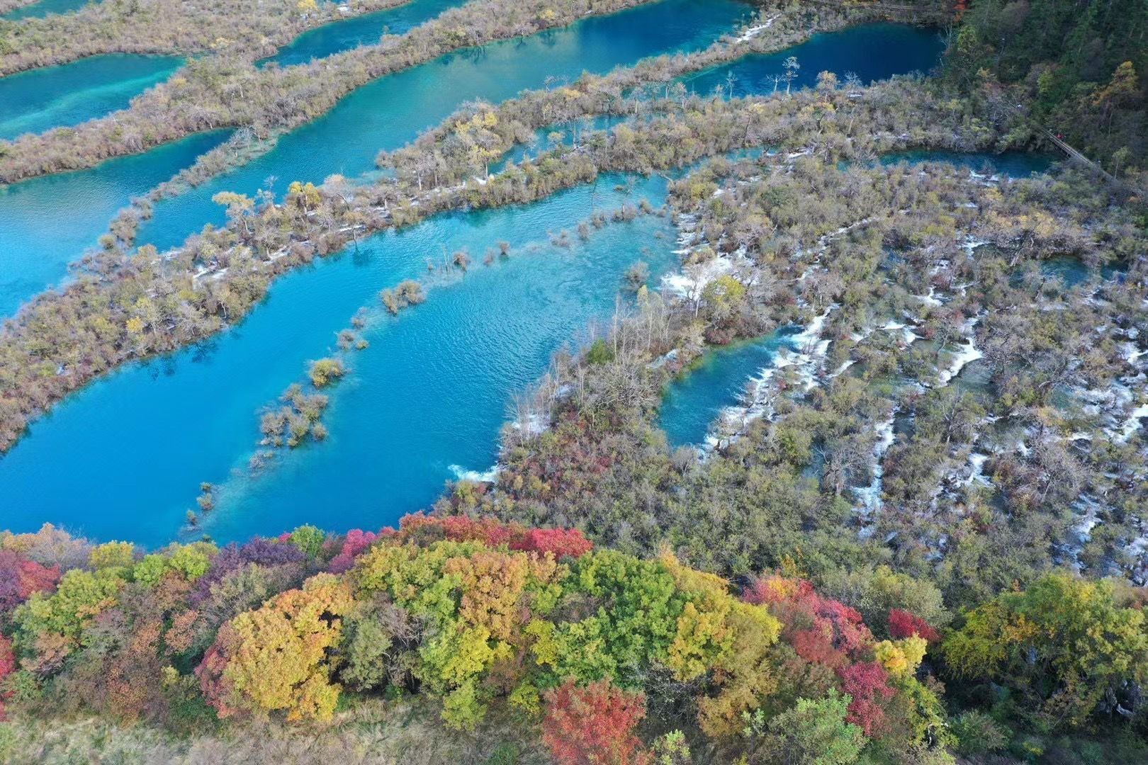 10月23日,2021海外华文媒体感知中国(四川)行,来自美国、巴西、阿根廷、南非、委内瑞拉、新西兰、匈牙利、意大利、日本等17个国家和地区的19家海外华文媒体的社长、总编辑走进九寨沟。补妆归来的九寨美景让大家惊呼不已。美国《华兴报》副总编辑朱小林感叹“九寨归来不看水”。的确,九寨沟,美丽宁静,让人感觉时光很慢。