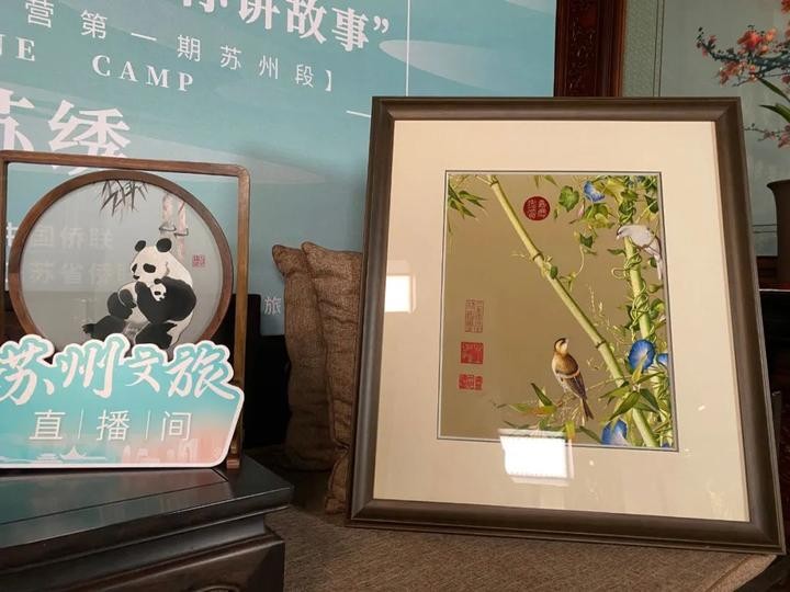 6月10日上午,苏工苏作的代表项目——苏绣在直播的最后一天与海外华裔青少年朋友们见面了,非物质文化遗产(苏绣)代表性传承人沈德龙老师是本场直播的特邀嘉宾。苏绣作为四大名绣之一,在独特的吴文化背景熏染下形成了独具特色的艺术风格,沈老师从苏绣的发展历史讲到独特技艺,还特别讲解了古吴绣皇品牌将西方油画与传统刺绣的创新结合,引起了小营员们的审美共鸣。