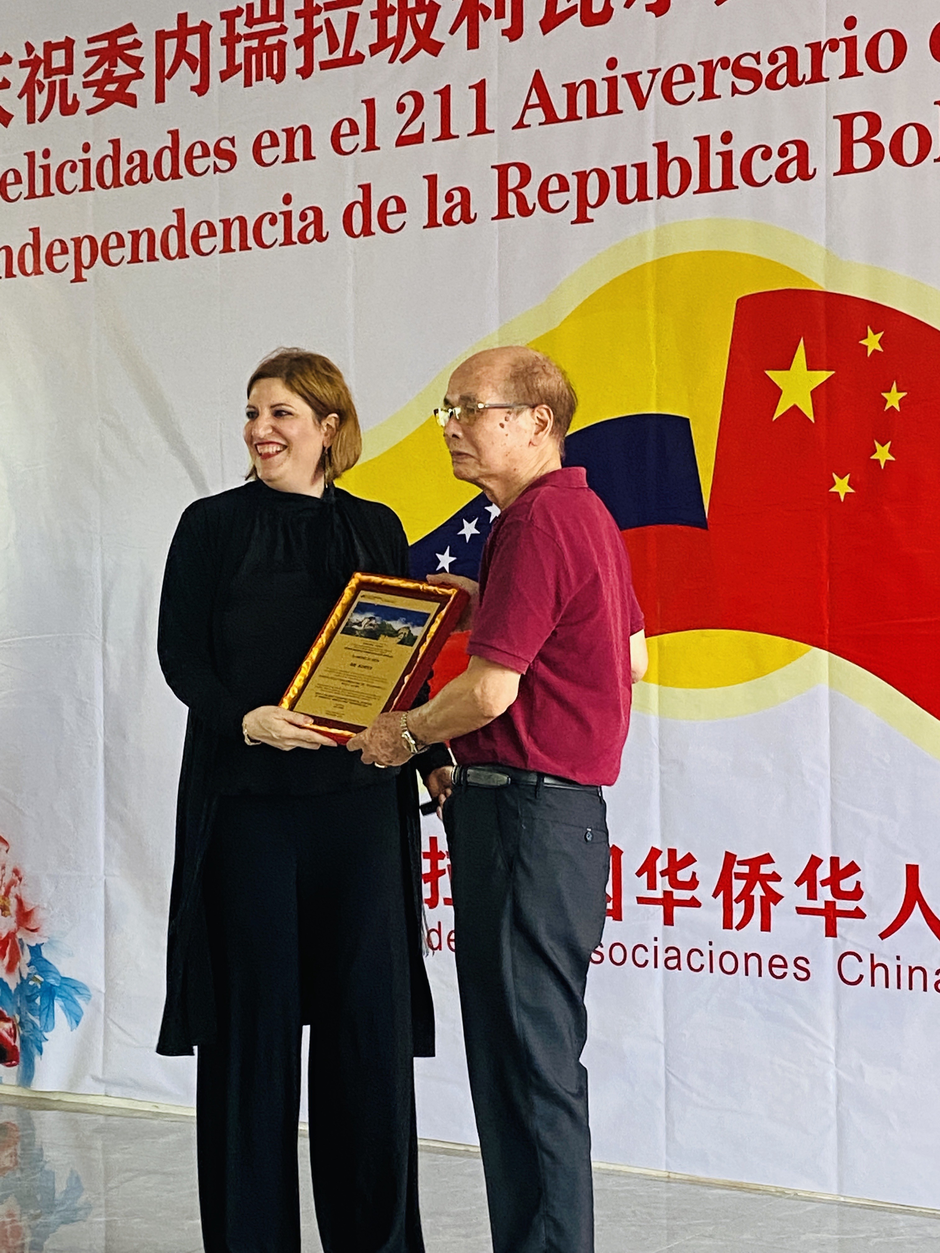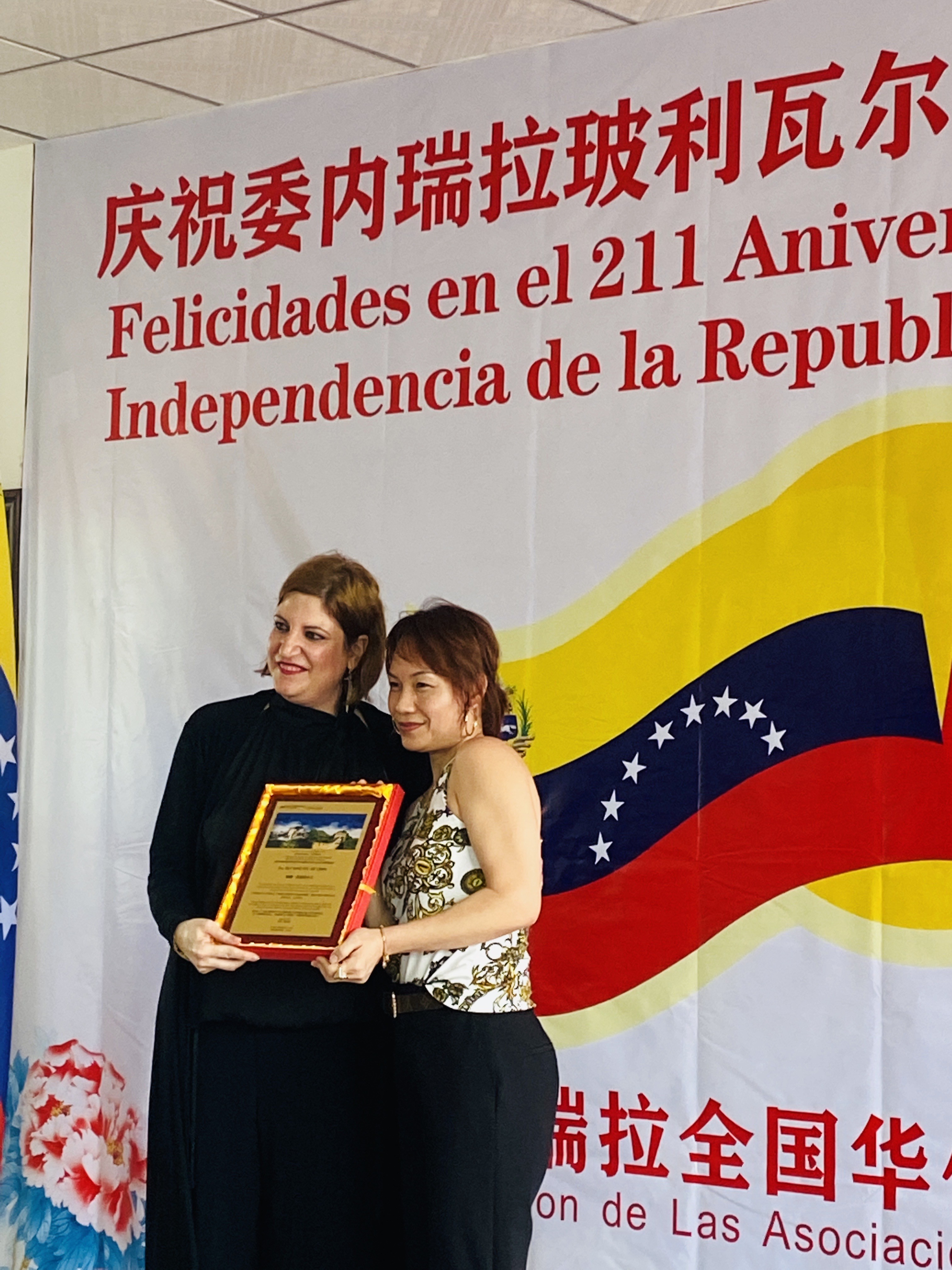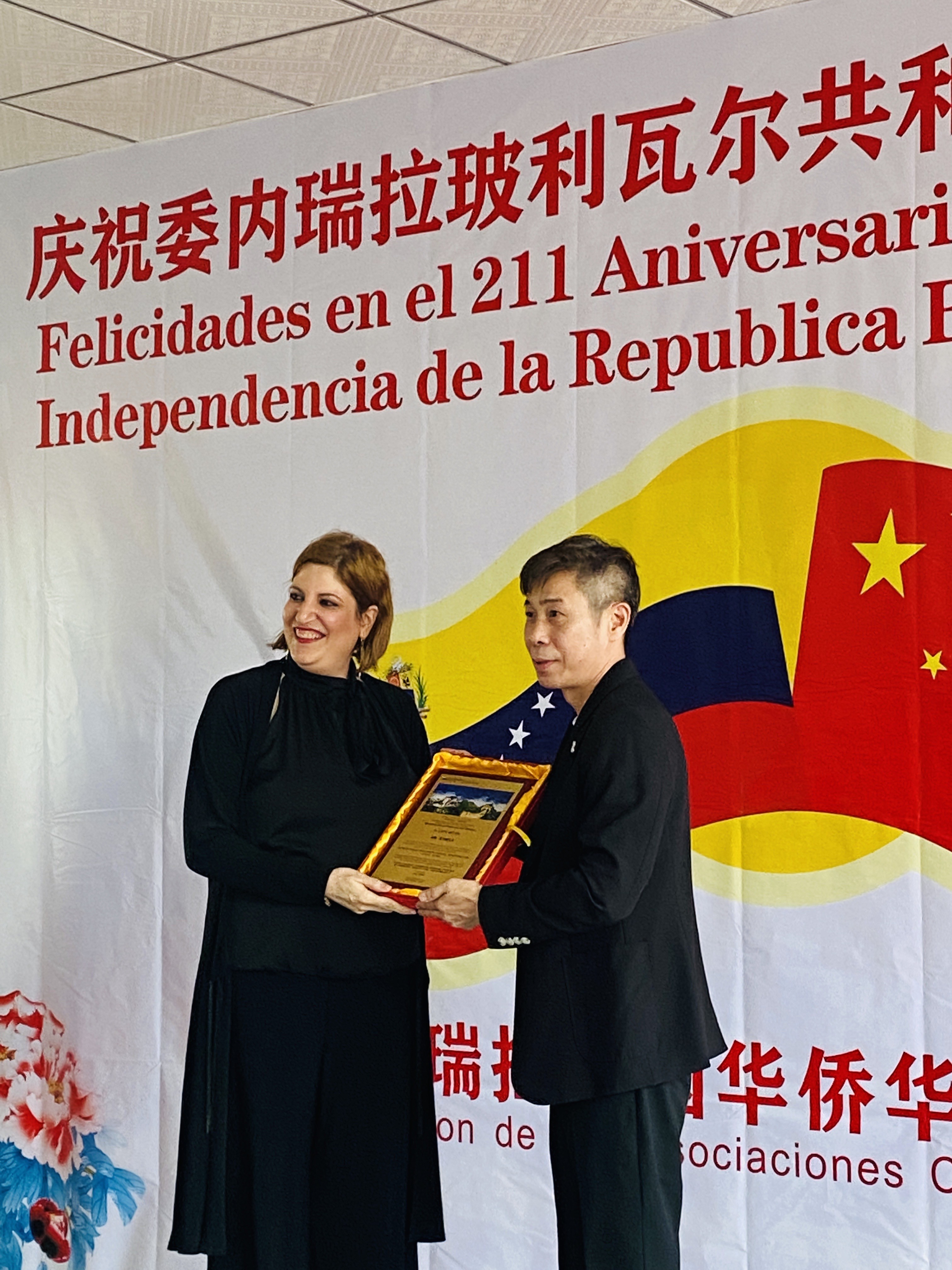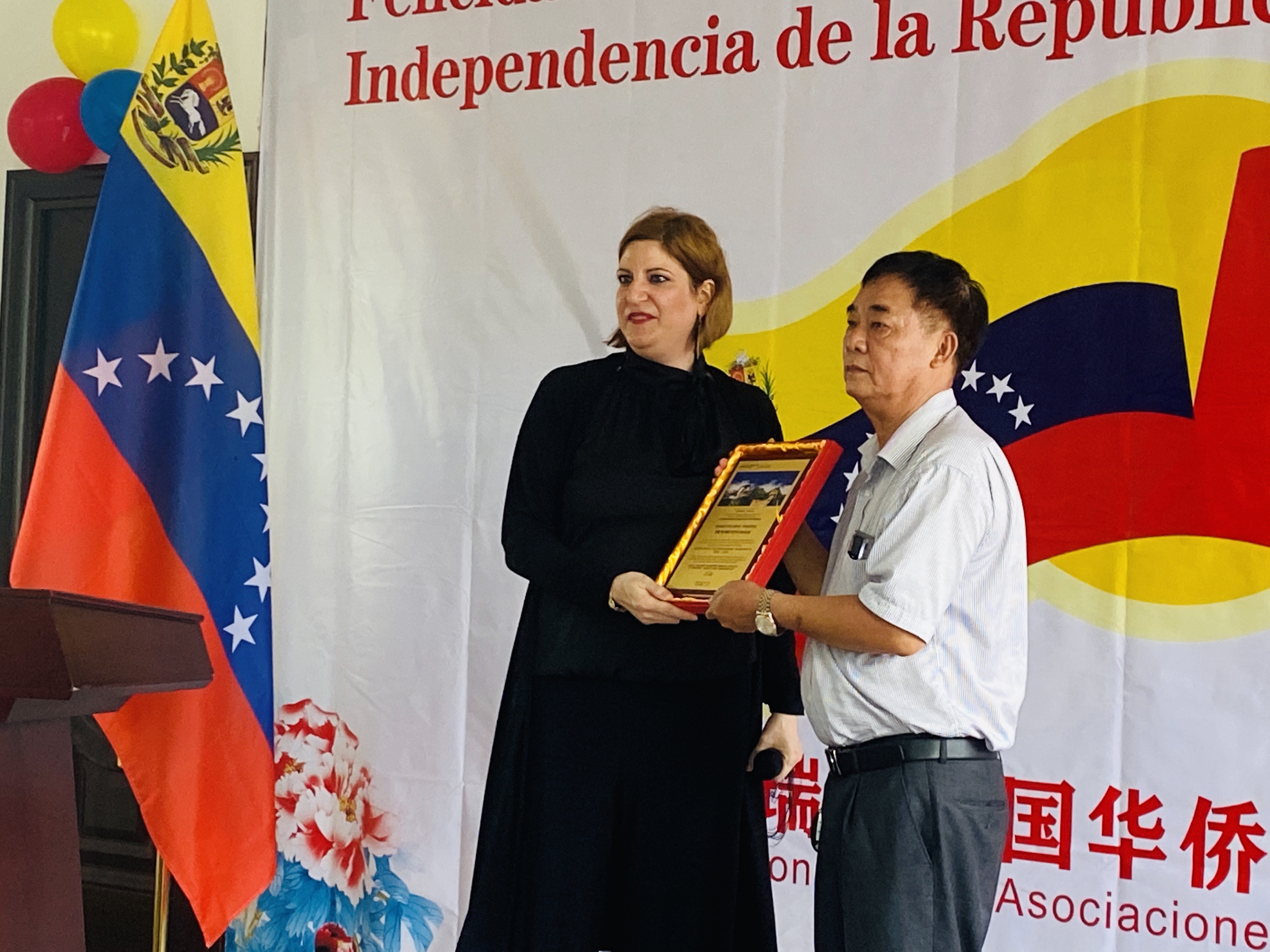 车丽总领事当天还代表委内瑞拉驻广州总领馆为总会副主席甄庭耀、黄达相,宣传部长何琪练,委中贸易商会会长陈伟嶙等颁发荣誉奖牌,表彰他们对中委友谊作出的贡献。