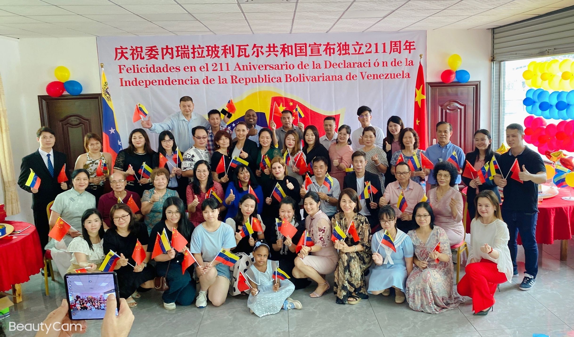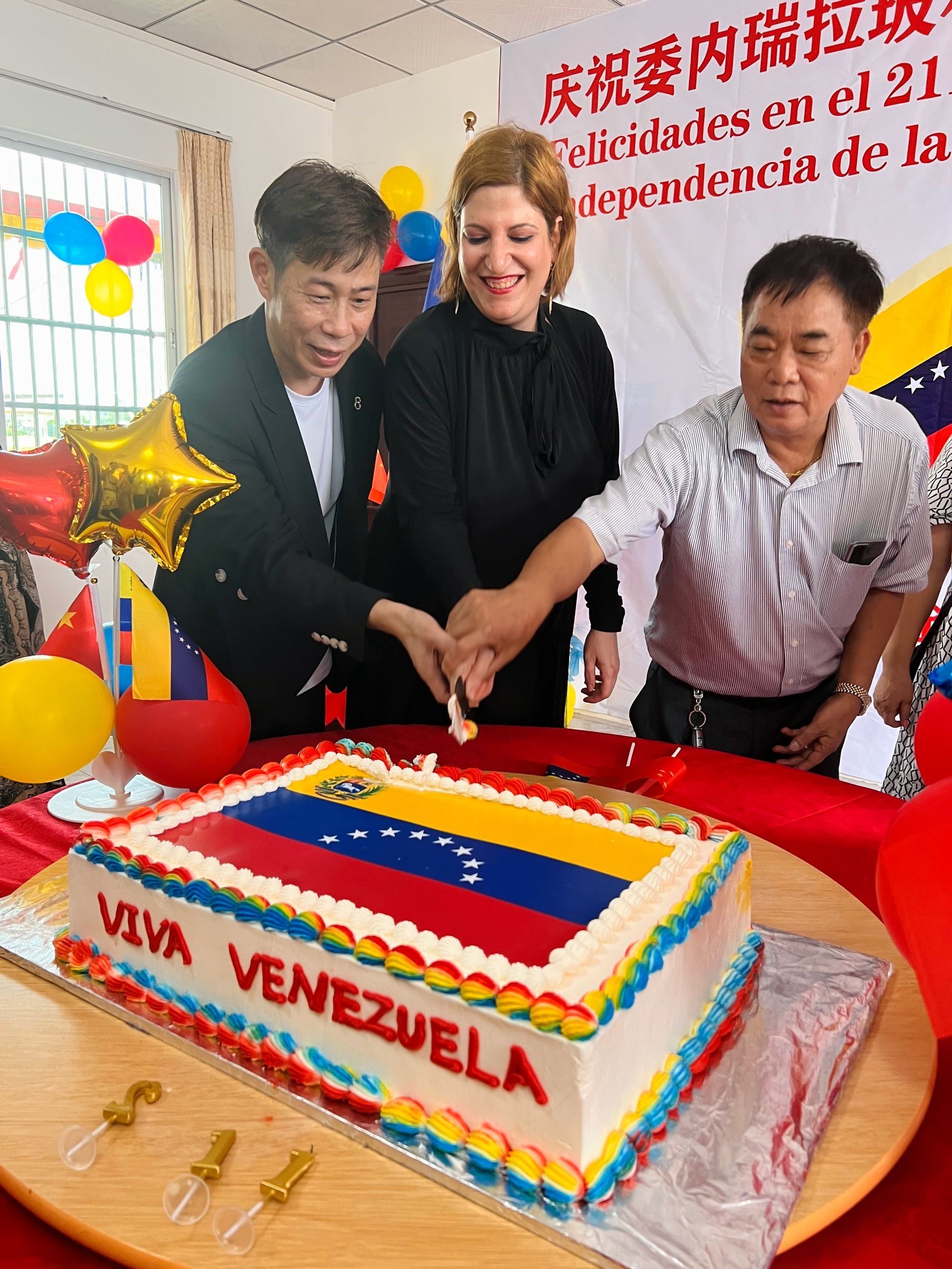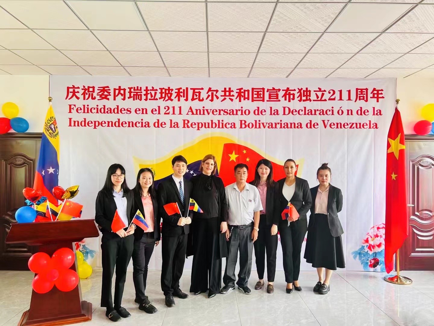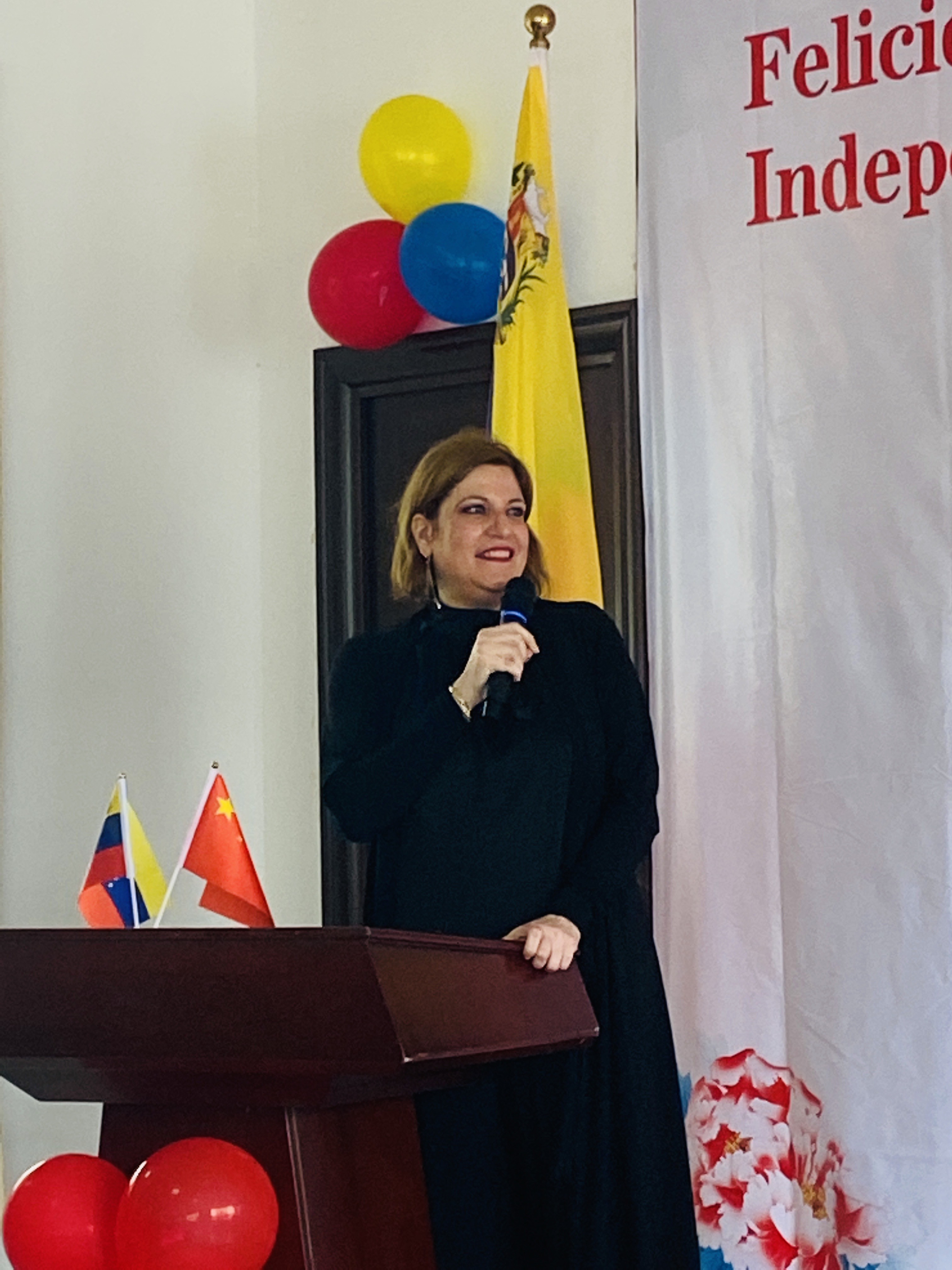 车丽总领事对委内瑞拉全国华侨华人联合总会恩平办事处举办此次庆祝活动表示感谢,她说,我们很高兴在中国广东省恩平市,和中委华人团体一同庆祝委内瑞拉宣布独立211周年,委内瑞拉驻广州总领事馆开馆以来得到各个华人社团的大力支持和帮助,特别是总会主席陈坚辉,虽然身在委内瑞拉,依然不遗余力地帮助我们;还有副主席七叔甄庭耀,精心准备了这场活动,让我们今天能够在恩平欢聚一堂。