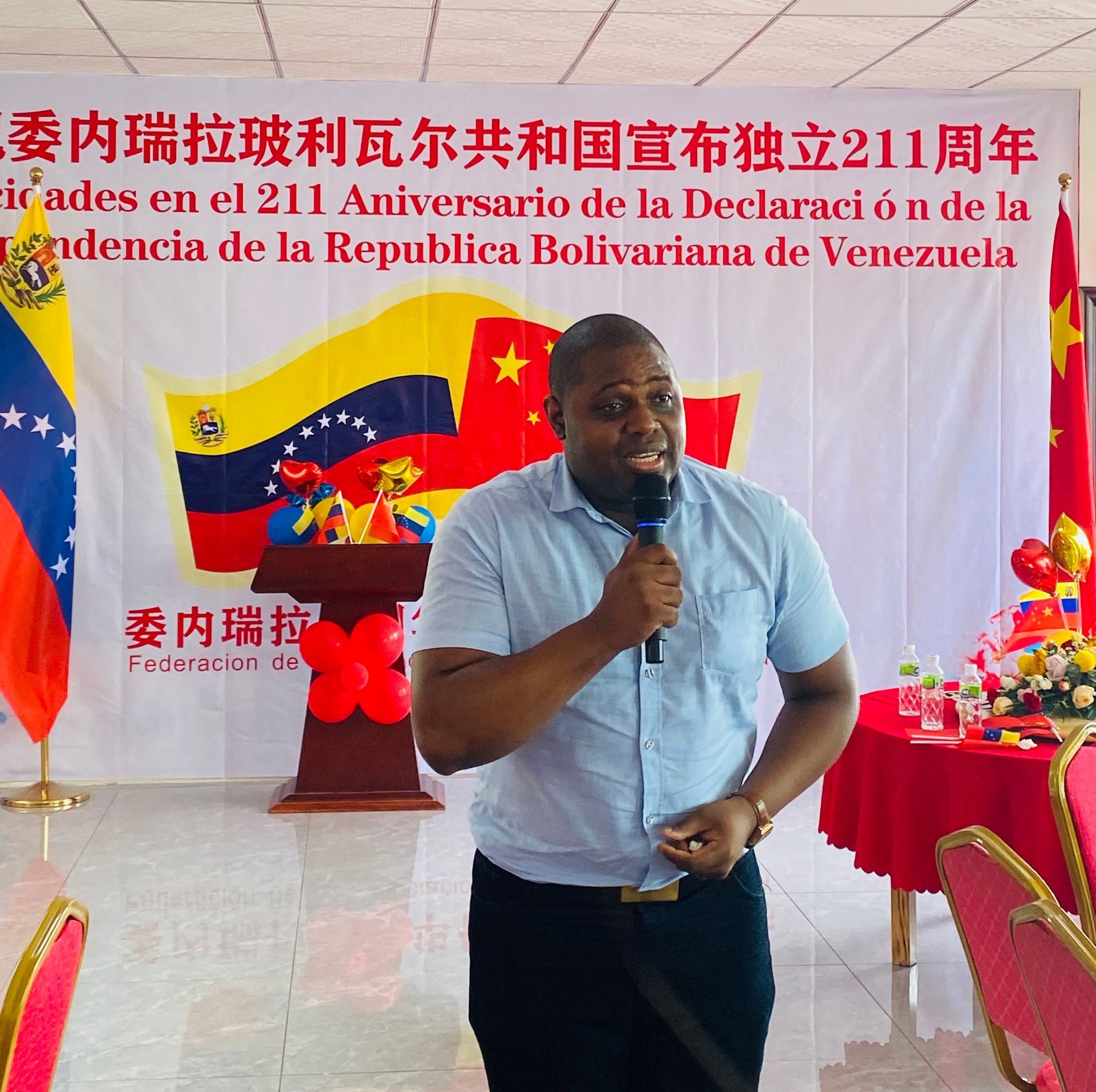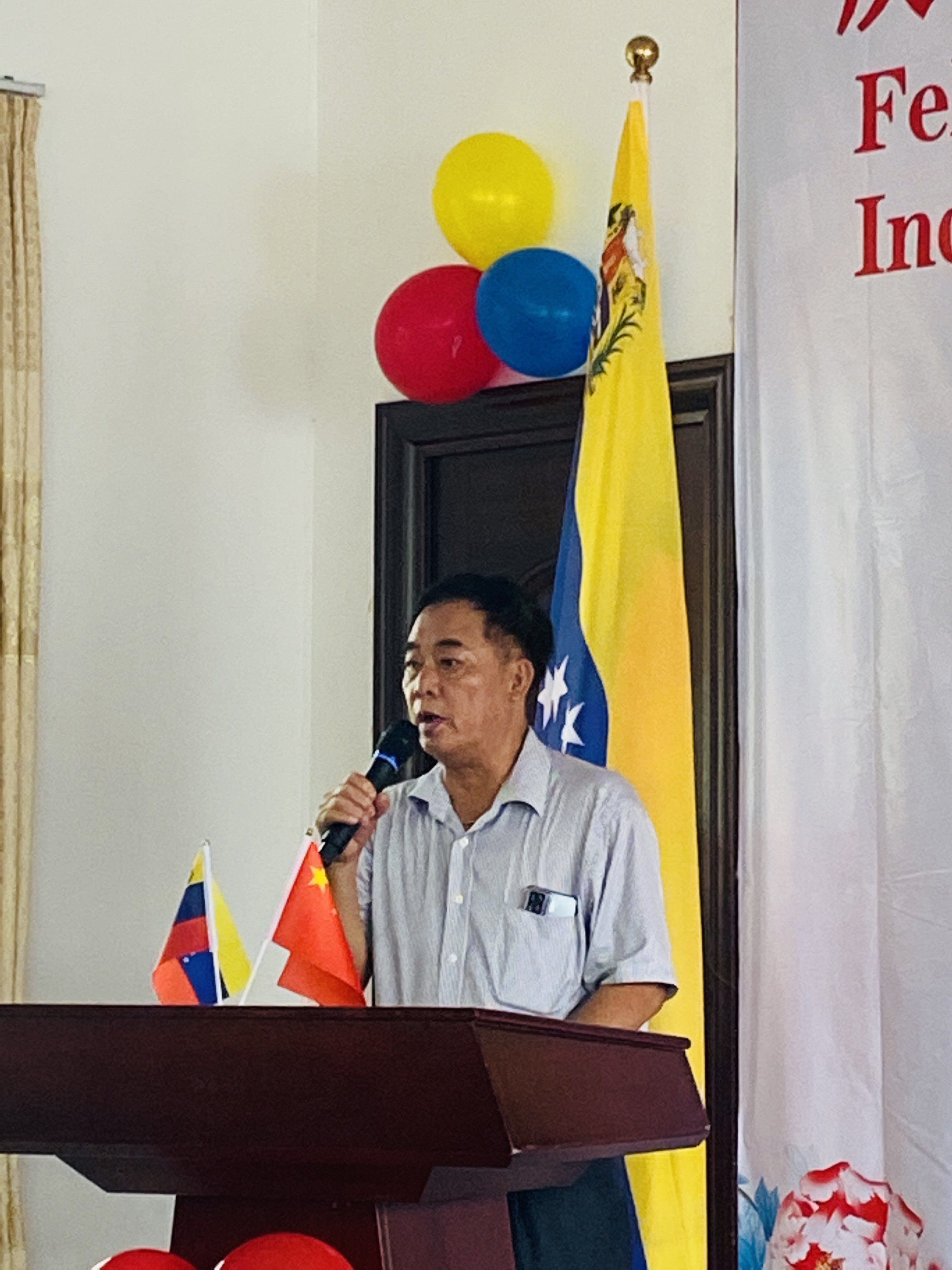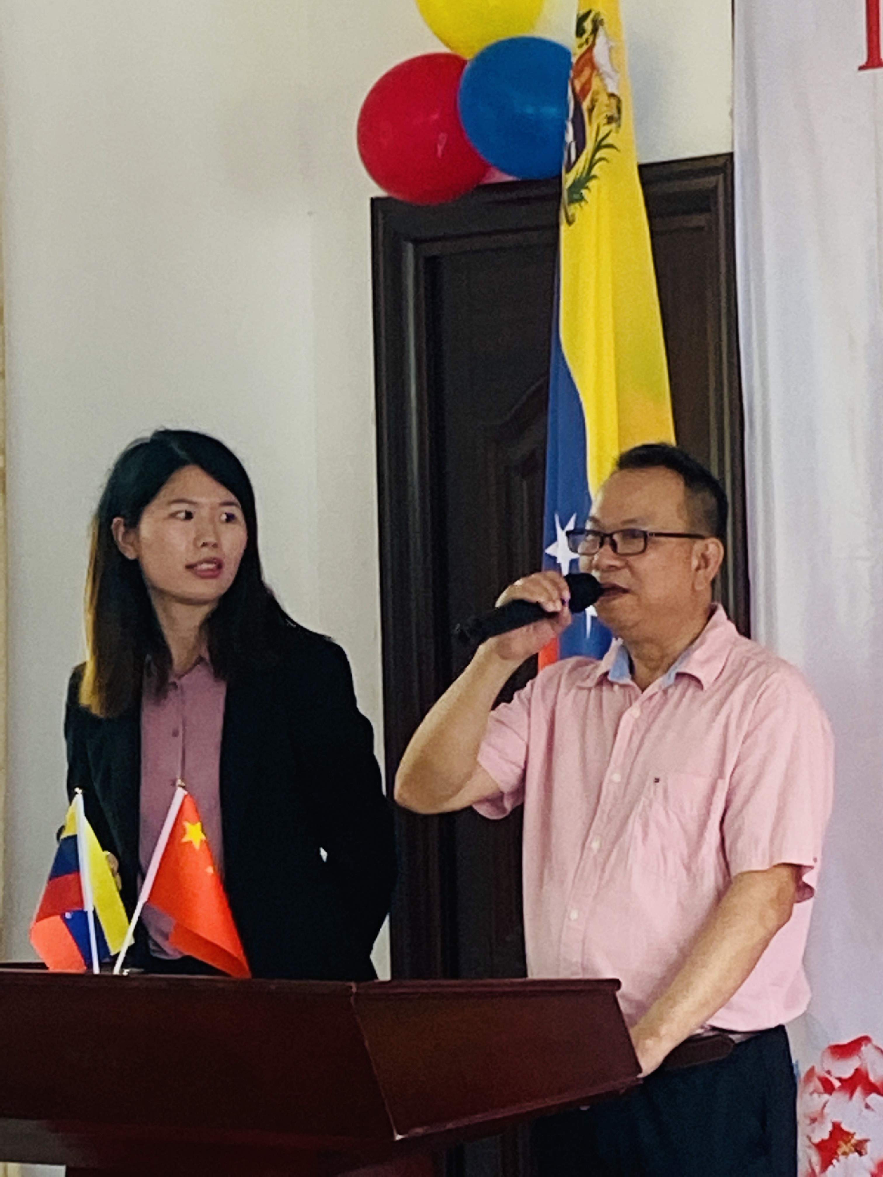 委内瑞拉全国华侨华人联合总会宣传部长何琪练首先代表总会及留在国内部分委籍华人对总领事一行来到恩平与大家共度委内瑞拉国庆佳节表示热烈欢迎和衷心感谢。何部长回顾了华人华侨在委内瑞拉生活和工作期间,与当地民众一起,睦邻友好,共同为建设委内瑞拉经济发展作贡献,他称赞委内瑞拉资源丰富,景色秀丽,作为华人华侨第二故乡,衷心祝愿委内瑞拉明天会更好。