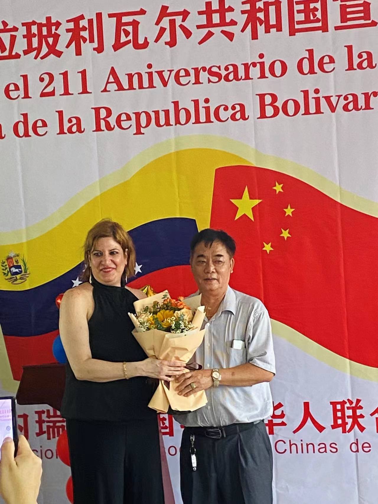 她说,七叔甄庭耀先生对我们委内瑞拉驻广州总领馆领事工作十分支持,积极协助分发护照、贴纸等,尽心尽力的帮助在中国的委国侨胞解决各种疑难问题,在此我们表示特别感谢并为他鼓掌。七叔甄庭耀先生等能够持续坚持支持我们总领馆工作,精神非常难能可贵,也彰显我们之间的友谊,这种奉献的精神和友谊值得我们尊敬和珍惜,我们希望委内瑞拉全国华侨华人联合总会一如继往地支持我们的工作,也祝广大曾在委内瑞拉工作和生活过的朋友们身体健康,万事如意。