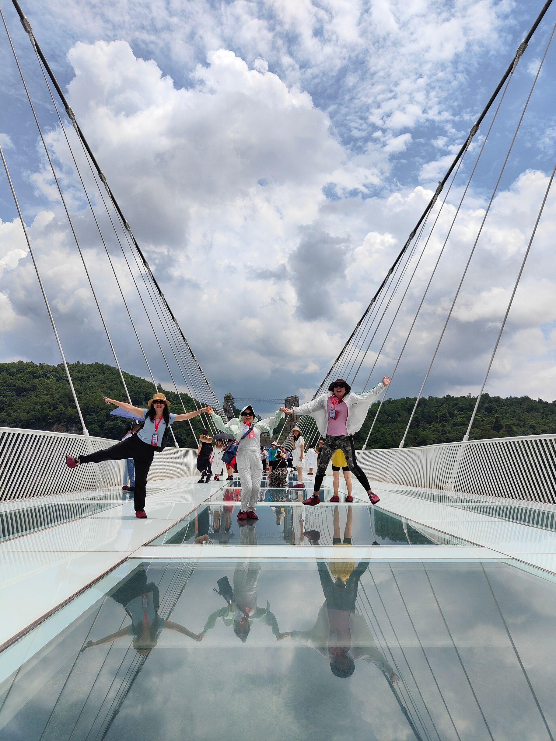 横跨峡谷两岸的高空玻璃桥,站在桥上,你会发现桥的中段由全透明的玻璃相连接,透过玻璃桥面,谷底风光尽收眼底,热爱拍照的游客,可尽情地摆出各种姿态,开启疯狂拍照模式,无需滤镜,随手拍出都是绝美大片。