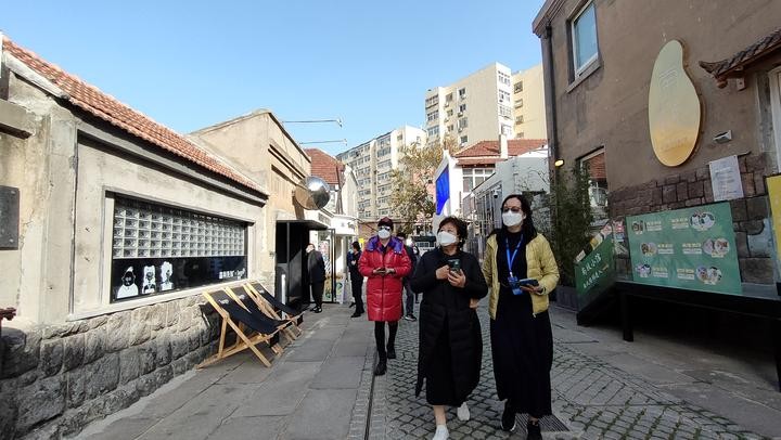 11月26日,第23期海外华文媒体高级研修班暨感知中国(山东)行活动来自16个国家的20家华文媒体负责人及骨干编辑记者在当地侨务部门的领导陪同下走进了位于青岛市市南区中山路商圈宁阳路的银鱼巷打卡,尽管受特殊时期及气候的影响,没有旺季人群的熙熙攘攘,但仍让海外华媒人感受到当地政府践行“人民城市人民建”的理念,让百年老街融入新鲜元素,释放新生能量,多维度提升民众的生活品质,倾力将百年老街打造成别具特色的创意街区、品牌街区、时尚街区。