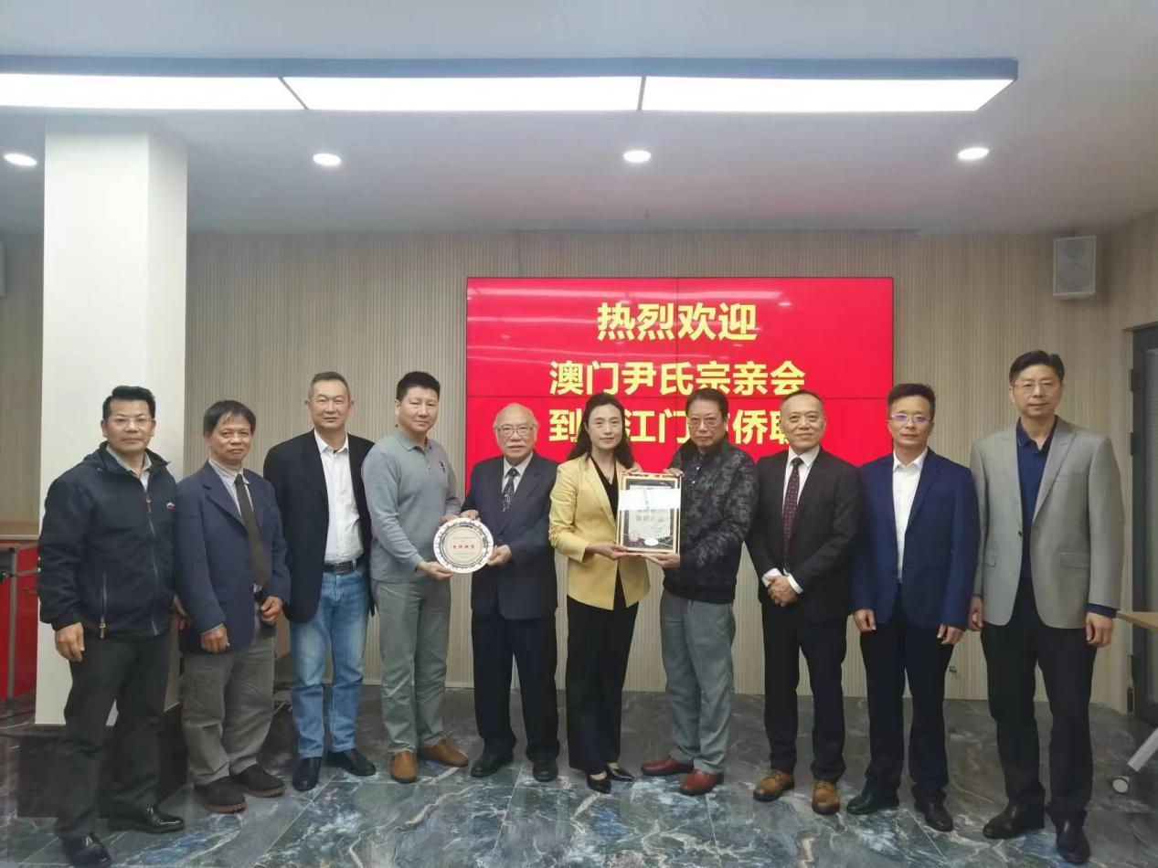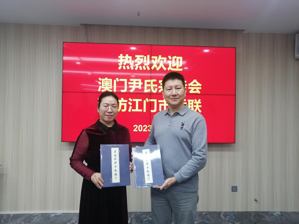 江门市侨联与澳门尹氏宗亲会互赠纪念品