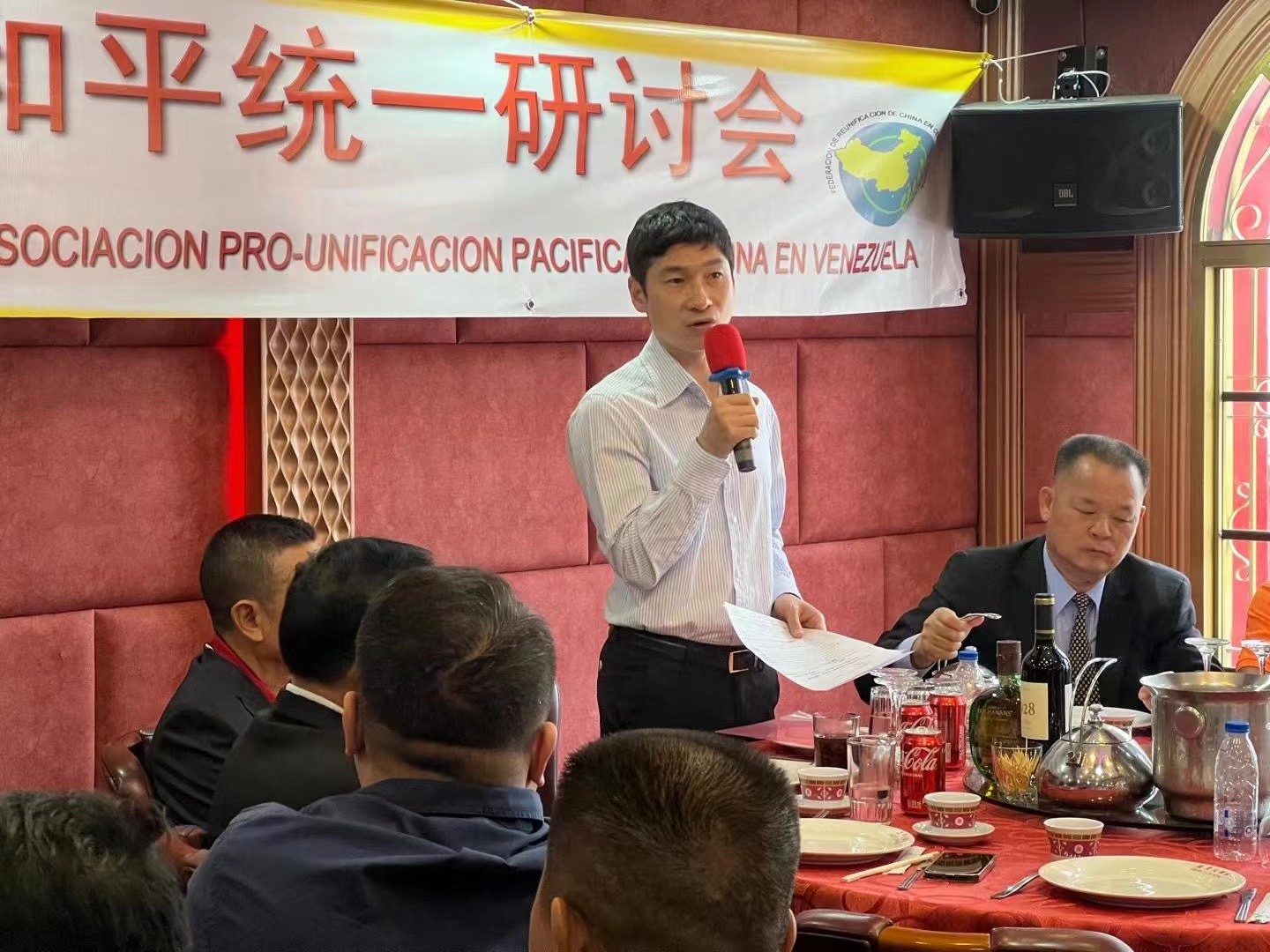 综合中国驻委内瑞拉大使馆、委内瑞拉全国华侨华人联合总会消息,今年5月7日,委内瑞拉中国和平统一促进会在委内瑞拉首都加拉加斯举办“新形势新局面下两岸和平统一”研讨会,中国驻委内瑞拉大使蓝虎应邀出席研讨会并致辞。