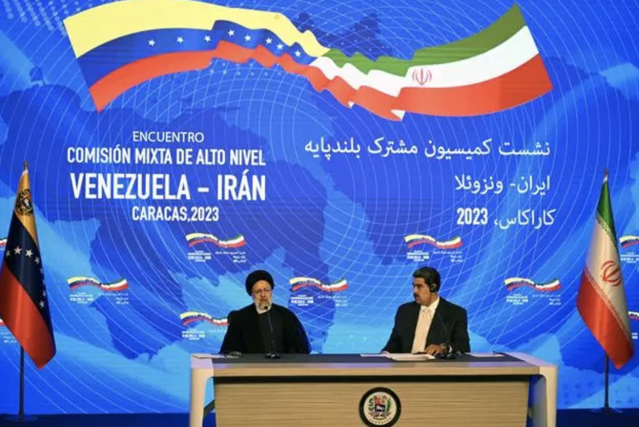 6月12日,在委内瑞拉首都加拉加斯,委内瑞拉总统马杜罗(右)与伊朗总统莱希出席联合新闻发布会。新华社/法新