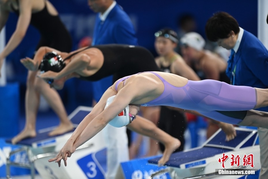 8月1日,第31届世界大学生夏季运动会女子4×100米自由泳接力决赛在四川成都举行,由李冰洁、柳雅欣、罗悠扬和张雨霏组成的中国队获得金牌。图为李冰洁出发瞬间。