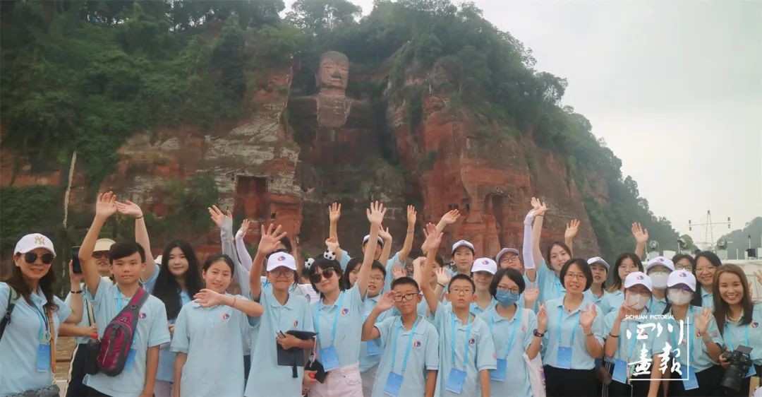 德国小记者王宇宁与澳大利亚小记者常菲对乐山大佛进行报道