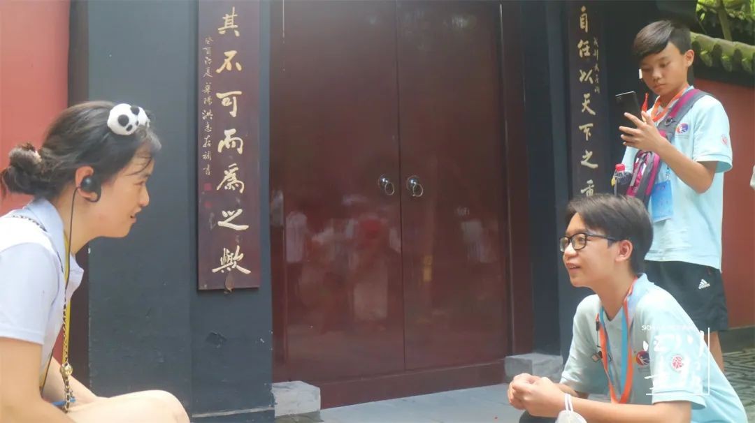 印尼小记者郑栩骏在武侯祠采访游客