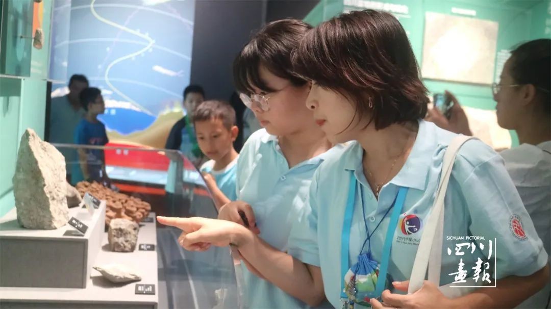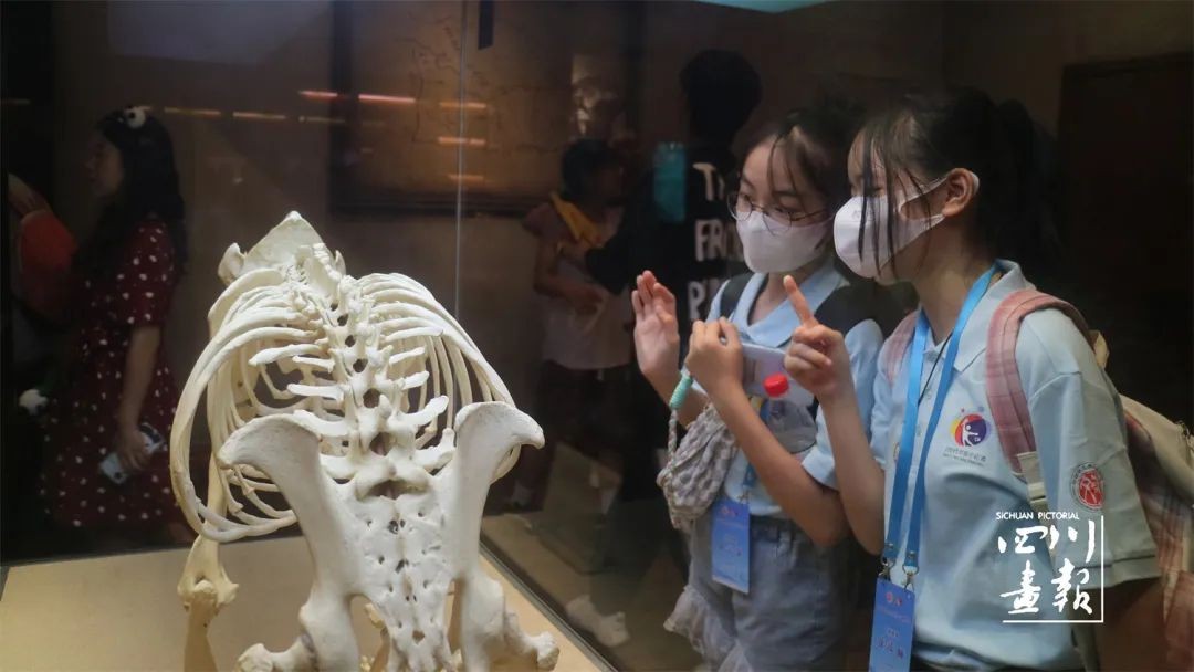 小记者在成都自然博物馆中认真听讲解员讲解