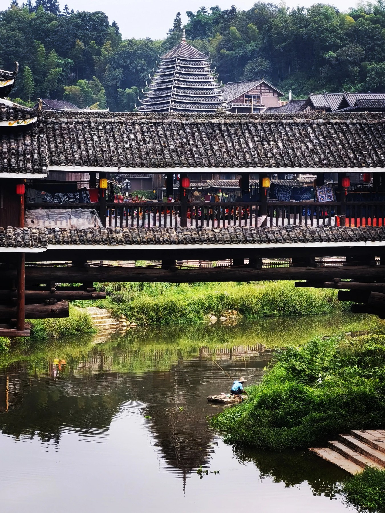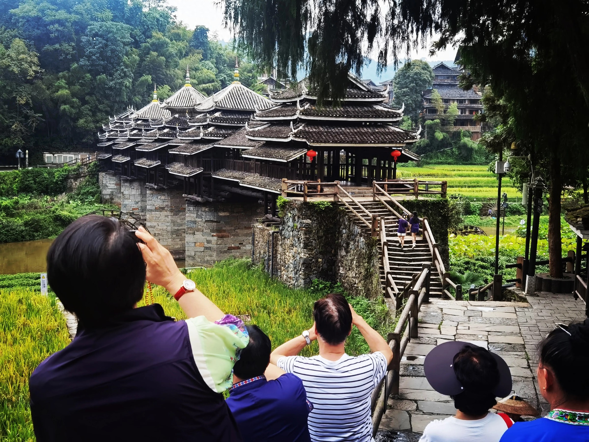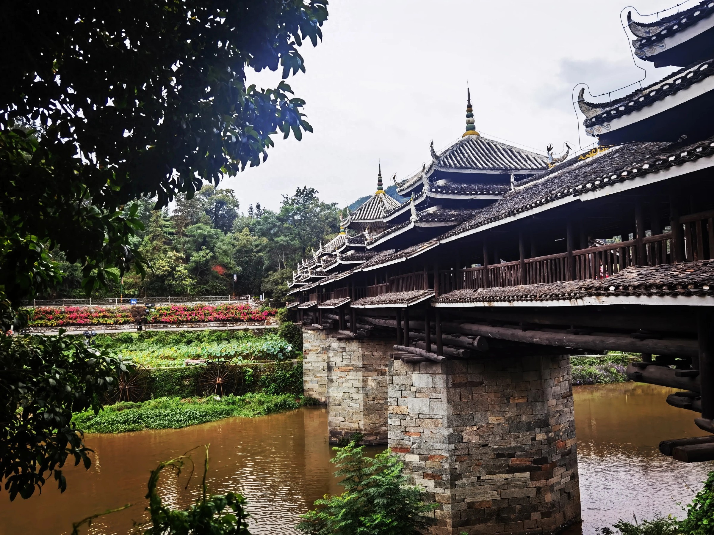 2023年9月14日笔者来到广西三江侗族自治县的程阳八寨景区的核心景点,据景区负责人杨召宇介绍,程阳永济风雨桥是世界四大历史文化名桥之一。在侗族村寨中,向来有“有寨必有鼓楼,有河必有风雨桥”的说法。这种特色是侗族人民长期在山区生活的经验体现,也是侗族文化中最生动和美丽的一面。程阳永济桥始建于民国元年(1912年)相传当时由八寨的五十位长者组成“首士团”牵头,发动人们捐钱、捐木、捐粮、捐工,共同建造。相传其中凿石、备料、砌墩用了四年,拉木、架梁用了三年,竖亭、盖瓦、装饰用了五年。前后共花去十二年时间,于民国十三年(1924年)才建成。程阳永济桥采用“密布式悬臂托架简支梁”体系建造,两台三墩四孔,长77.76米,宽3.75米,桥面高11.52米,5座桥亭建于墩台之上,与19间桥廊和谐连为一体,集桥、廊、亭三者于一身,浑然天成,体现了百越民族干栏建筑的特色,同时又兼具中国古典宫殿建筑的工艺。在桥的正中有三个大字“永济桥”。这是著名学者郭沫若先生1965年10月在桂林调研时为它题的字。同时还留下一首诗,“艳说林溪风雨桥,桥长廿丈四寻高。重瓴联阁怡神巧,列砥横流入望遥。竹木一身坚胜铁,茶林万载茁新苗。何时得上三江道,学把犁锄事体劳。”走在风雨桥之上,各位可以体会到,我们脚下踩着的木板非常沉稳。抬头向上,各种榫卯结构也严丝合缝,几乎看不出百年来的风霜。面对这样的建筑奇迹,我们必须为桥梁设计建造者的智慧喝彩,也要感谢侗族人民百年以来的细心呵护。从风雨桥浓厚的文化内涵内涵来看,风雨桥被侗族人认为是人们和前世今生沟通的“生命之桥”或“生命通道”,一般都建在侗寨的“水口”,也就是河流出侗寨的地方,既方便了对外交通,也希望能够把福气留在侗寨之中,因此它也被称之为”福桥”。当然,侗族人民对美的追求是无以复加的,他们不仅把自己打扮的漂漂亮亮,更会将风雨桥这样的建筑营造得光鲜亮丽,仿佛大山深处一朵美丽的鲜花,所以还会被称为“花桥”。三江县目前共保留下197座风雨桥,所以也有“世界楼桥之乡”的美誉。这座风雨桥的建筑风格,侗族廊桥多数为平梁伸臂式木构廊桥,先在石墩上架设木梁,木梁上建华丽的桥屋。这座桥梁的美观大气,同样少不了桥上5座规模宏大、造型各异的桥亭衬托。它中间三座为4层宝塔式桥亭,桥头两座是殿式墩亭,可以说集侗族楼亭三种基本造型于一身。桥亭顶上装有用红土烧制的葫芦,象征如意吉祥。桥盖采用青瓦白脊戗,形成黑白分明的横线分割,给人以庄重典雅的艺术美感。整座桥都是由杉木建造,这么重的木构建筑群,全靠底下“密布式悬臂托架简支梁”体系支撑,桥墩则全部用巨大石砌成,每个桥墩宽2.5米、长8.2米,平面两端呈69°40’锐角,以减少洪水的冲力。独特的侗族木构建筑营造技艺已被列为国家非物质文化遗产。对程阳永济风雨桥的保护是比较早的,在1982年2月就被列为第二批全国重点文保单位,同时,也在社会各界的共同努力之下,在发展特色旅游助推乡村振兴的历史机遇之下,传统的侗族文化也在与时俱进的背景中得到更好的传承和发扬,这种在发展中传承的模式,能够为风雨桥和侗族文化的复兴开创一片新的天地。