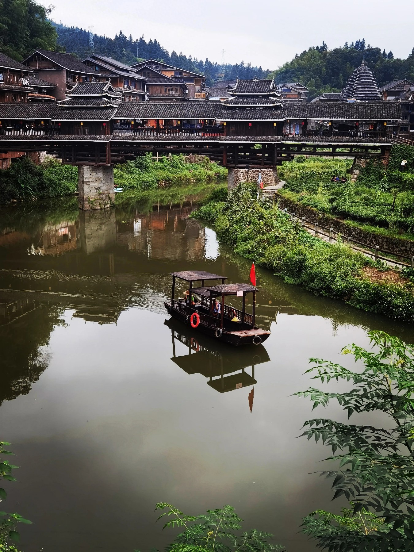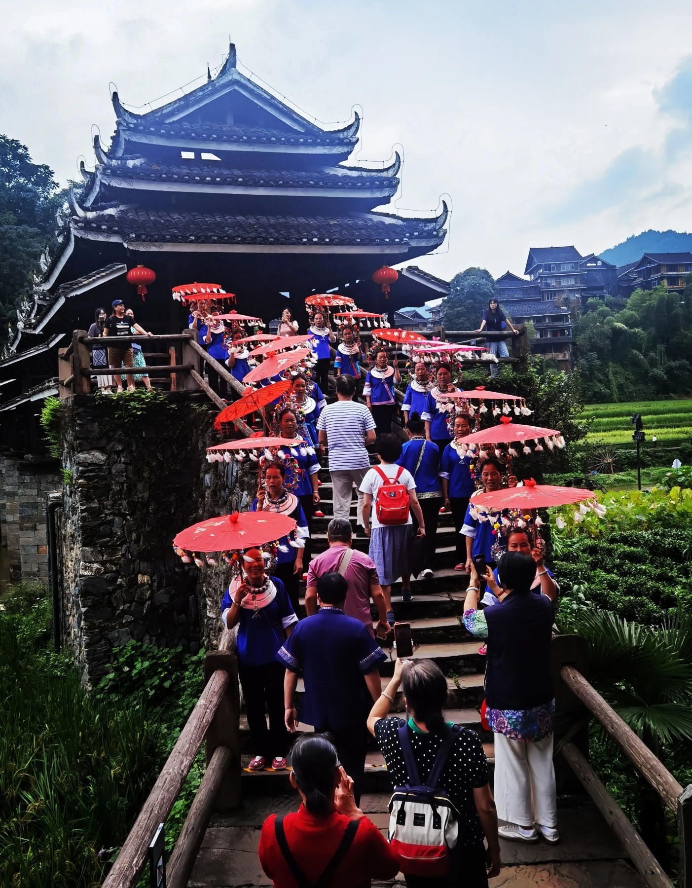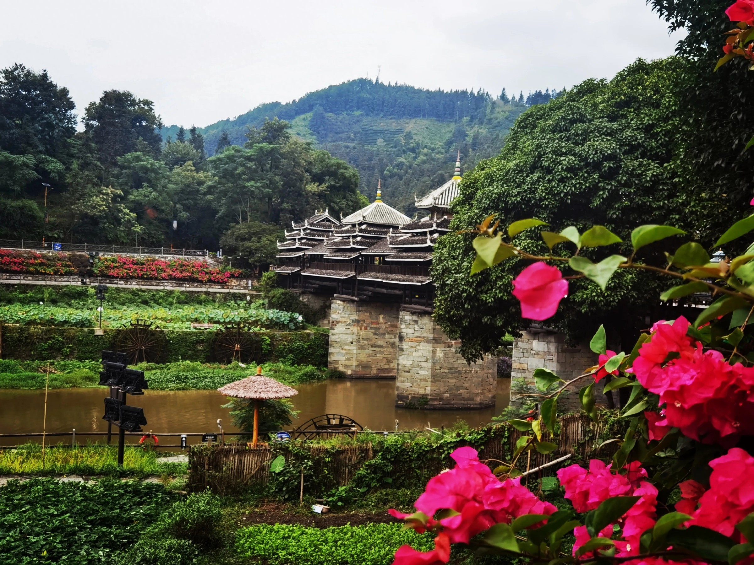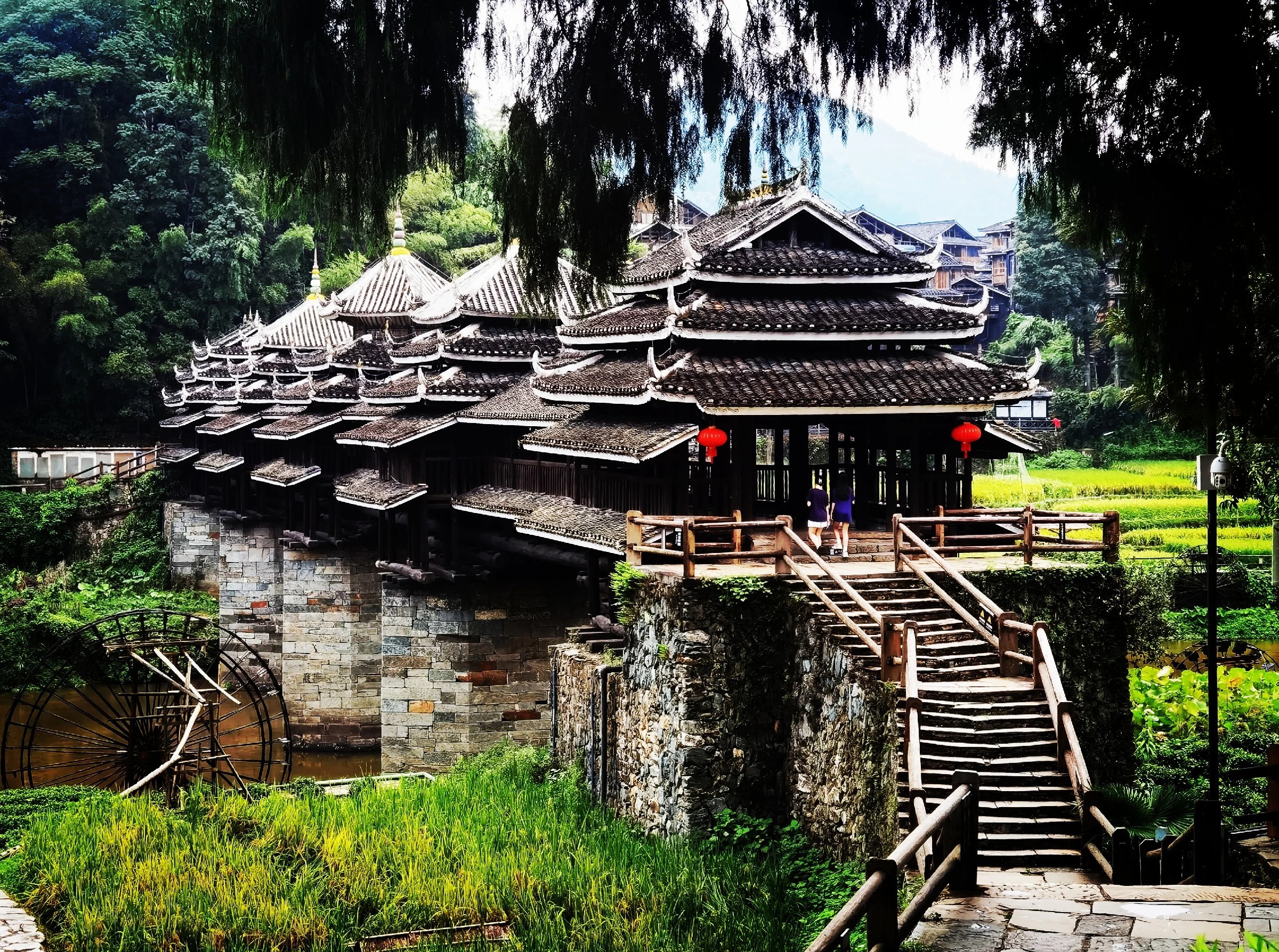 2023年9月14日笔者来到广西三江侗族自治县的程阳八寨景区的核心景点,据景区负责人杨召宇介绍,程阳永济风雨桥是世界四大历史文化名桥之一。在侗族村寨中,向来有“有寨必有鼓楼,有河必有风雨桥”的说法。这种特色是侗族人民长期在山区生活的经验体现,也是侗族文化中最生动和美丽的一面。程阳永济桥始建于民国元年(1912年)相传当时由八寨的五十位长者组成“首士团”牵头,发动人们捐钱、捐木、捐粮、捐工,共同建造。相传其中凿石、备料、砌墩用了四年,拉木、架梁用了三年,竖亭、盖瓦、装饰用了五年。前后共花去十二年时间,于民国十三年(1924年)才建成。程阳永济桥采用“密布式悬臂托架简支梁”体系建造,两台三墩四孔,长77.76米,宽3.75米,桥面高11.52米,5座桥亭建于墩台之上,与19间桥廊和谐连为一体,集桥、廊、亭三者于一身,浑然天成,体现了百越民族干栏建筑的特色,同时又兼具中国古典宫殿建筑的工艺。在桥的正中有三个大字“永济桥”。这是著名学者郭沫若先生1965年10月在桂林调研时为它题的字。同时还留下一首诗,“艳说林溪风雨桥,桥长廿丈四寻高。重瓴联阁怡神巧,列砥横流入望遥。竹木一身坚胜铁,茶林万载茁新苗。何时得上三江道,学把犁锄事体劳。”走在风雨桥之上,各位可以体会到,我们脚下踩着的木板非常沉稳。抬头向上,各种榫卯结构也严丝合缝,几乎看不出百年来的风霜。面对这样的建筑奇迹,我们必须为桥梁设计建造者的智慧喝彩,也要感谢侗族人民百年以来的细心呵护。从风雨桥浓厚的文化内涵内涵来看,风雨桥被侗族人认为是人们和前世今生沟通的“生命之桥”或“生命通道”,一般都建在侗寨的“水口”,也就是河流出侗寨的地方,既方便了对外交通,也希望能够把福气留在侗寨之中,因此它也被称之为”福桥”。当然,侗族人民对美的追求是无以复加的,他们不仅把自己打扮的漂漂亮亮,更会将风雨桥这样的建筑营造得光鲜亮丽,仿佛大山深处一朵美丽的鲜花,所以还会被称为“花桥”。三江县目前共保留下197座风雨桥,所以也有“世界楼桥之乡”的美誉。这座风雨桥的建筑风格,侗族廊桥多数为平梁伸臂式木构廊桥,先在石墩上架设木梁,木梁上建华丽的桥屋。这座桥梁的美观大气,同样少不了桥上5座规模宏大、造型各异的桥亭衬托。它中间三座为4层宝塔式桥亭,桥头两座是殿式墩亭,可以说集侗族楼亭三种基本造型于一身。桥亭顶上装有用红土烧制的葫芦,象征如意吉祥。桥盖采用青瓦白脊戗,形成黑白分明的横线分割,给人以庄重典雅的艺术美感。整座桥都是由杉木建造,这么重的木构建筑群,全靠底下“密布式悬臂托架简支梁”体系支撑,桥墩则全部用巨大石砌成,每个桥墩宽2.5米、长8.2米,平面两端呈69°40’锐角,以减少洪水的冲力。独特的侗族木构建筑营造技艺已被列为国家非物质文化遗产。对程阳永济风雨桥的保护是比较早的,在1982年2月就被列为第二批全国重点文保单位,同时,也在社会各界的共同努力之下,在发展特色旅游助推乡村振兴的历史机遇之下,传统的侗族文化也在与时俱进的背景中得到更好的传承和发扬,这种在发展中传承的模式,能够为风雨桥和侗族文化的复兴开创一片新的天地。