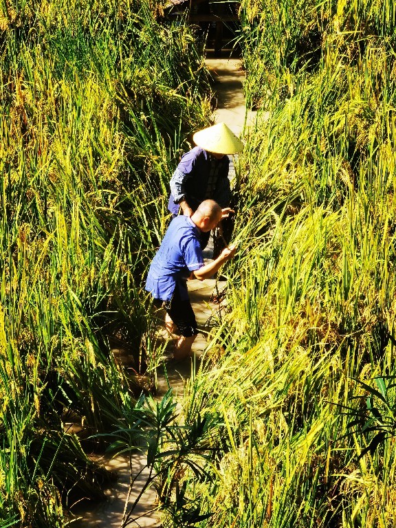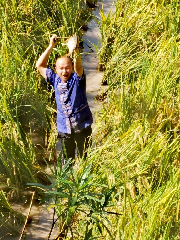 在农历八月十五前侗家人择时放水捞鱼,设宴请客,田干了刚好就可以收割水稻,鱼稻双丰收。所以这种水稻还有一个特别实在的名字,叫做“高山鱼稻”,这里特殊的高山环境,会让水稻经历20多天的山区自然霜冻,到深秋初冬才结穗,从而使水稻不仅口感更好,还贮存更多营养成分,在古代还一度被列为贡米。