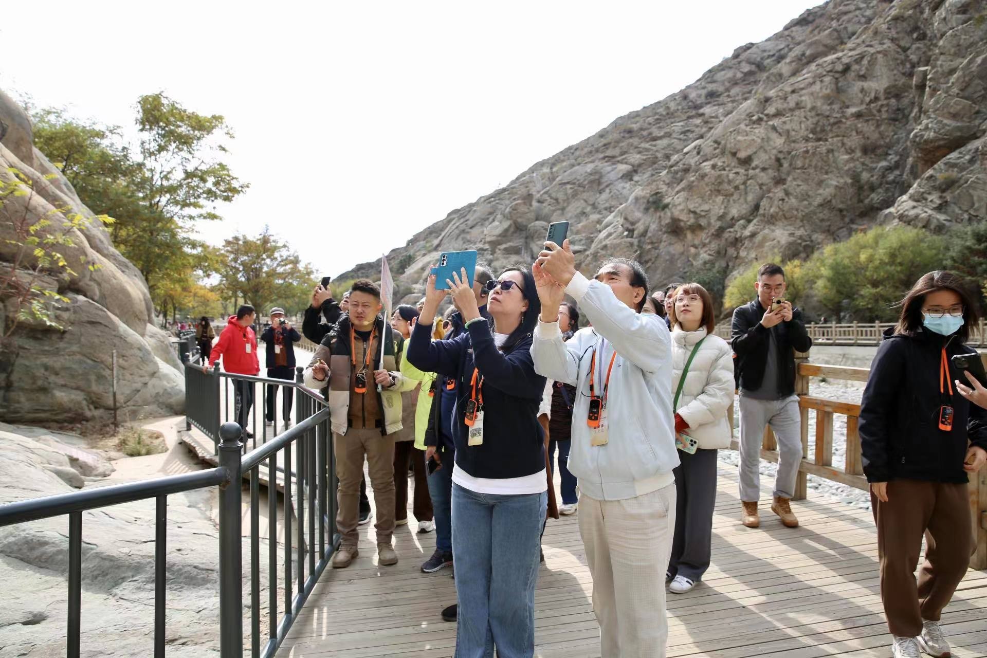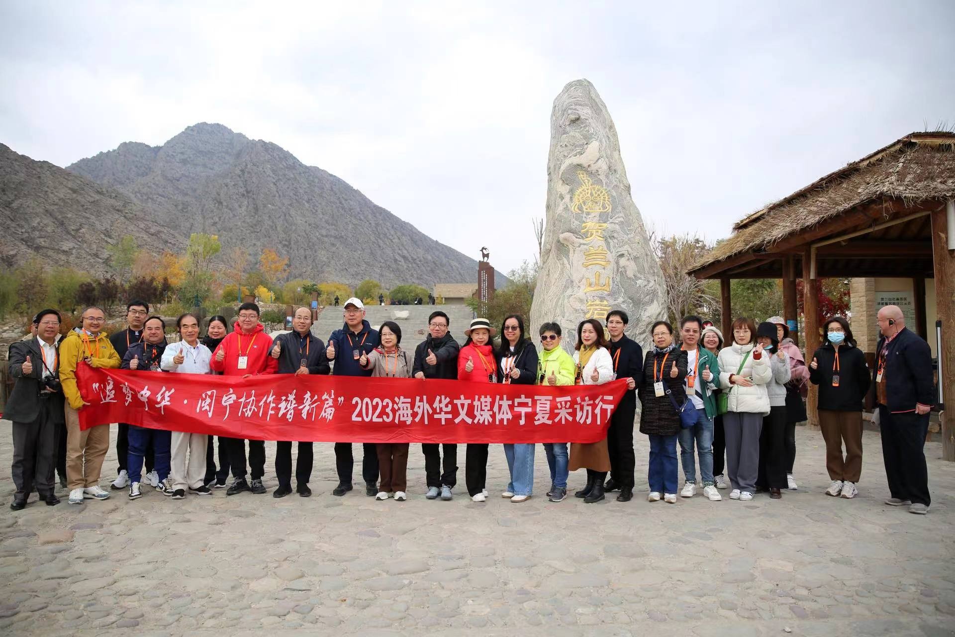 10月19日,参加“追梦中华·闽宁协作谱新篇”2023 海外华文媒体宁夏采访行来自马来西亚、委内瑞拉、俄罗斯、美国、德国、加拿大、埃及等国家和地区的17家海外华文媒体和5家涉侨中央媒体代表来到贺兰山岩画遗址,解读刻在石头上的史诗。