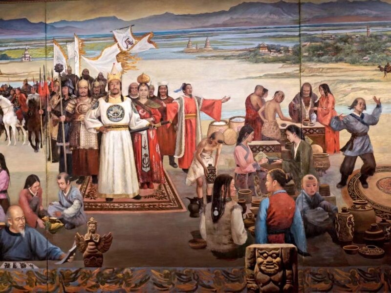 反映当时贵族生活的西夏木版画,造型简洁古雅,具有典型民族特色的西夏铜壶、还有大量的西夏木器、瓷器、金属器皿和西夏文书等等。