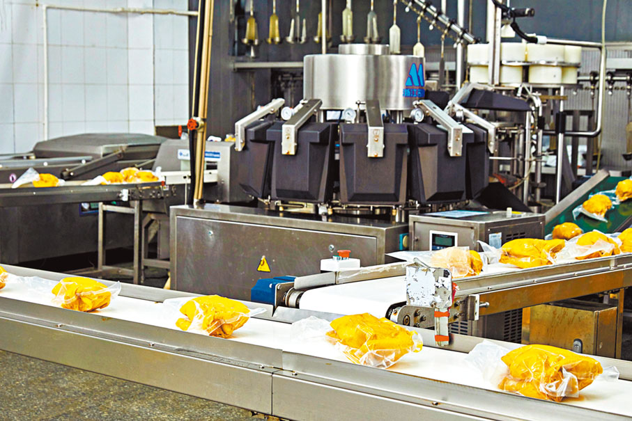 一隻隻供港白切雞預製菜正在加工生產線中加工。(香港文匯報廣州傳真)