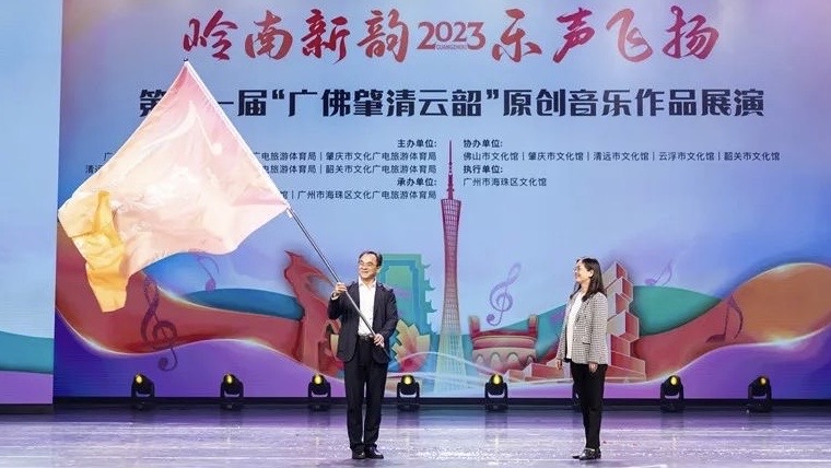 (大公文匯網 記者 胡若璋)日前,以「嶺南新韻,樂聲飛揚」為主題的「廣佛肇清雲韶」原創音樂作品展演在廣州市文化館大劇場上演,本次展演的18個作品,涵蓋粵港澳大灣區文化、陶瓷文化、瑤族文化、客家文化等豐富的嶺南文化題材,以樂隊組合、歌伴舞、男女對唱、小組唱、二重唱等多樣的音樂形式傳遞出嶺南文化的獨特魅力和蓬勃生命力。展演活動上,廣州把「廣佛肇清雲韶」原創音樂作品展演的旗幟遞交給佛山。佛山也正式成為下一屆「廣佛肇清雲韶」原創音樂作品展演的東道主。