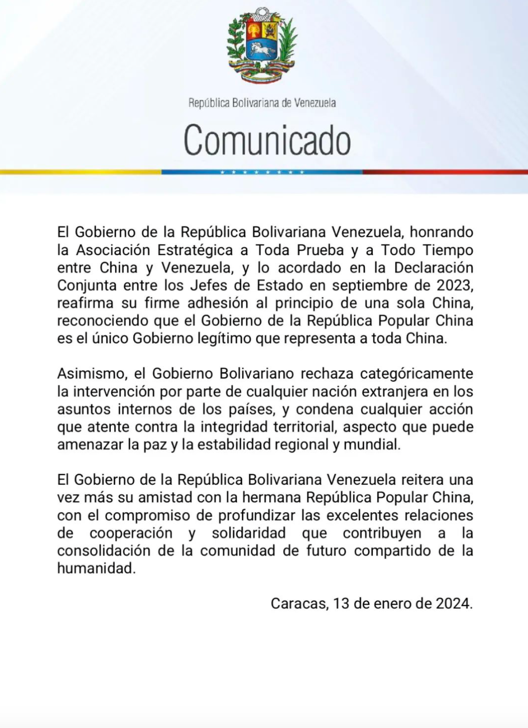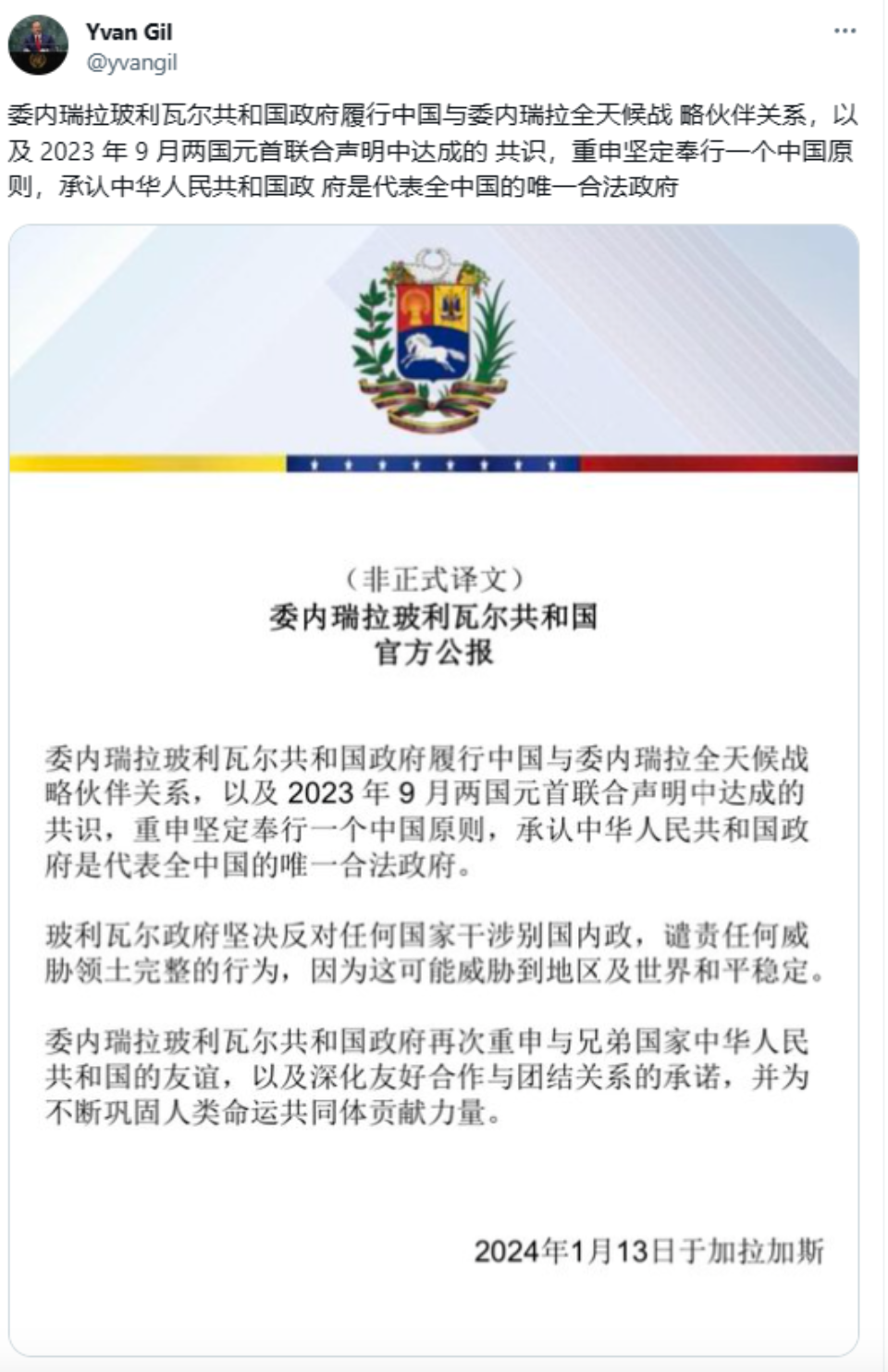 委副总统罗德里格斯、外长希尔在其社交平台转发政府公报,委国家电视台、南方电视台、《最新消息报》、《奥里诺科邮报》等主流媒体予以积极报道。