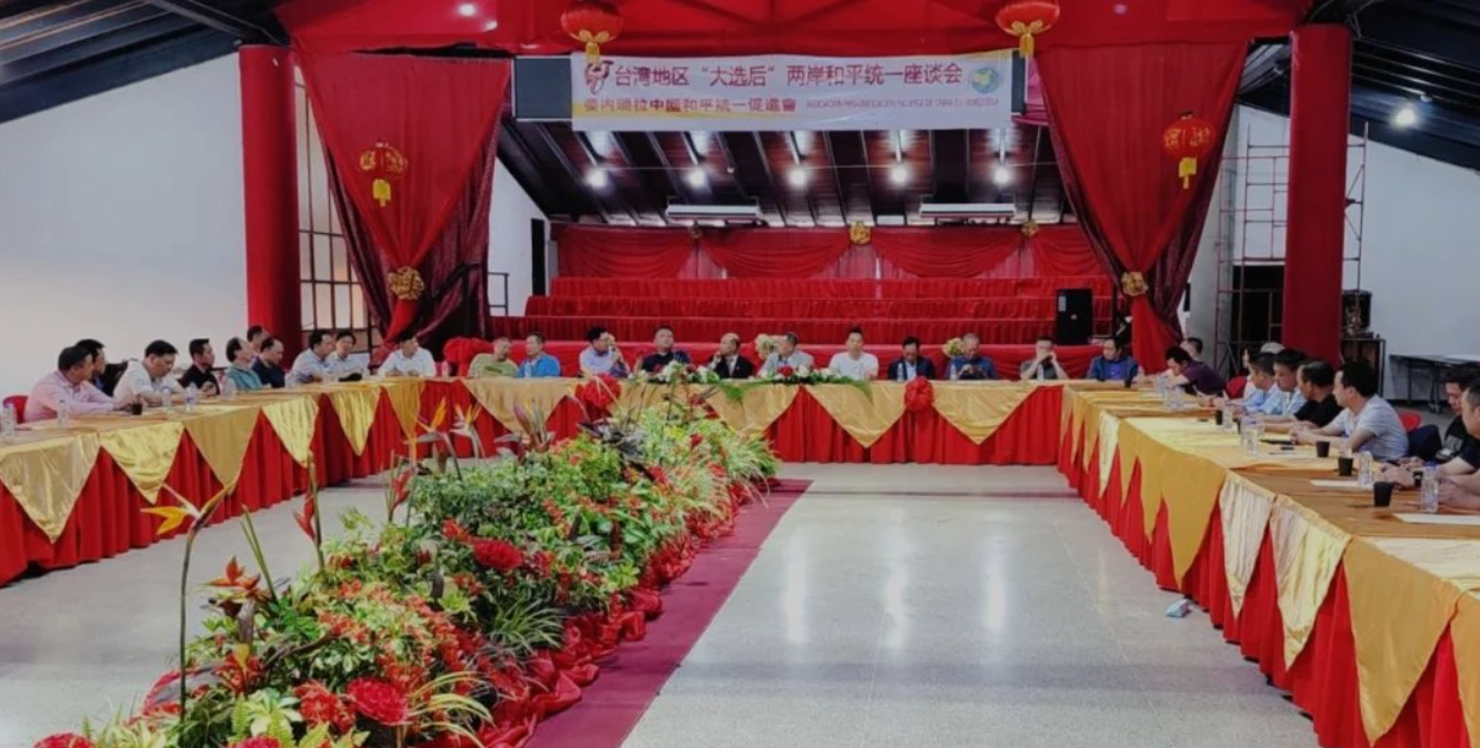 1月20日下午,委内瑞拉中国和平统一促进会在Valencia中华会馆举办了《台湾地区“大选后”两岸和平统一座谈会》。出席座谈会有委内瑞拉中国和平统一促进会创会会长李瑞华、会长聂国常、第一副会长冯永贤、委内瑞拉华助中心主任李锦盛、东方千禧年公司主席吴伟明、及12个主要中华会馆、各地商会、全委文联的主要领导,加拿大中南美洲华人侨胞联合总会甄金纯主席等共50多人参加了座谈会。