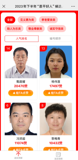紧接着,在1月25日举行的广东省2023年下半年“好人好事”评选活动中,甄庭耀先生以其卓越的社会贡献和广泛的群众基础,获得了高达20470张选票,荣膺全省第一名。这一成绩不仅是对他个人长期以来无私奉献的认可,也是对恩平市人民的集体荣誉。