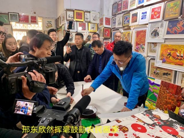 2021年4月3日,国际艺术大师邢东回到阔别已久的家乡,和香港影视明星吕良伟一起举办《致敬辉煌经典——辉煌画派联展》,期间,邢东先生一行兴致勃勃前往陕西户县(鄠邑)农民画乡参观。