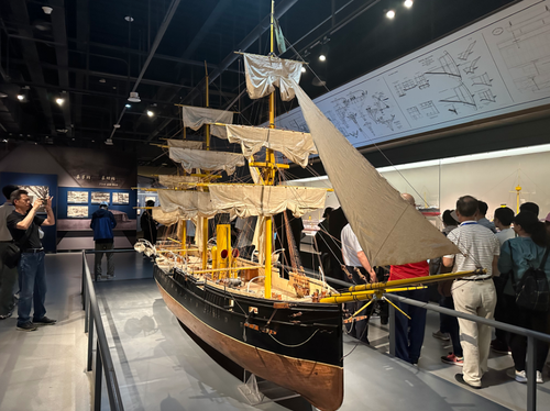 采访团一行跟随讲解员的脚步走进中国船政文化博物馆,了解船政在内忧外患中向海图强的光辉历程,体悟中国近现代船政人奋发图强、不屈奋斗的坚毅精神。